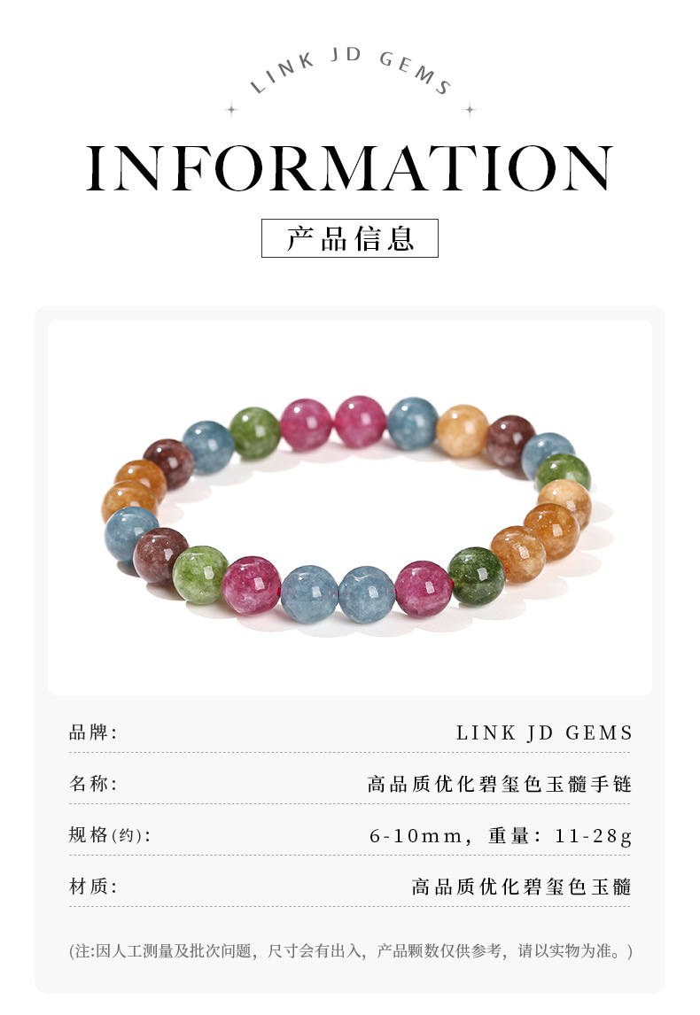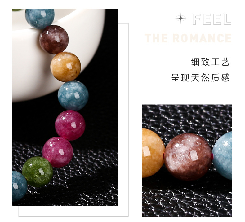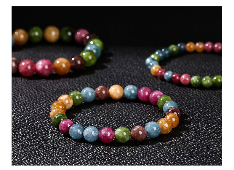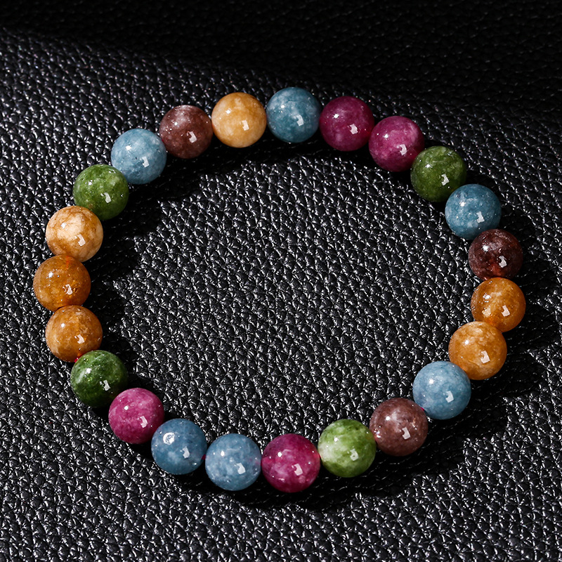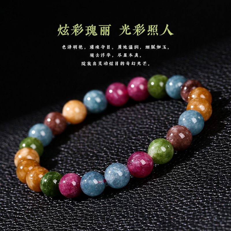 Jingdong Jewelry High Quality Tourmaline Chalcedony Bracelet Rich Candy Color Fashion Girls' Round Bead Bracelet Wholesale