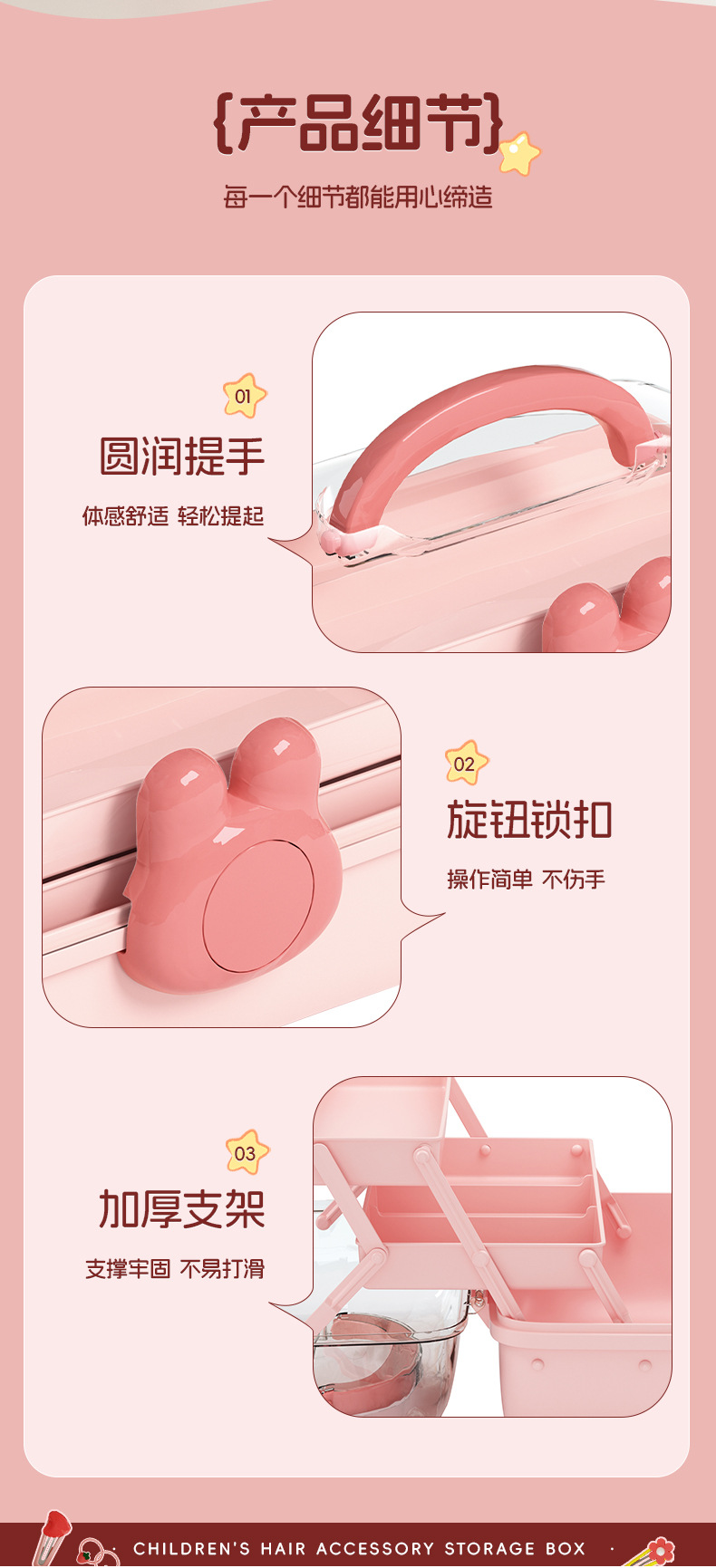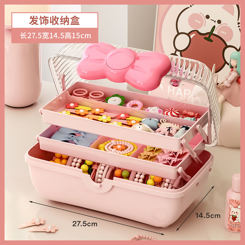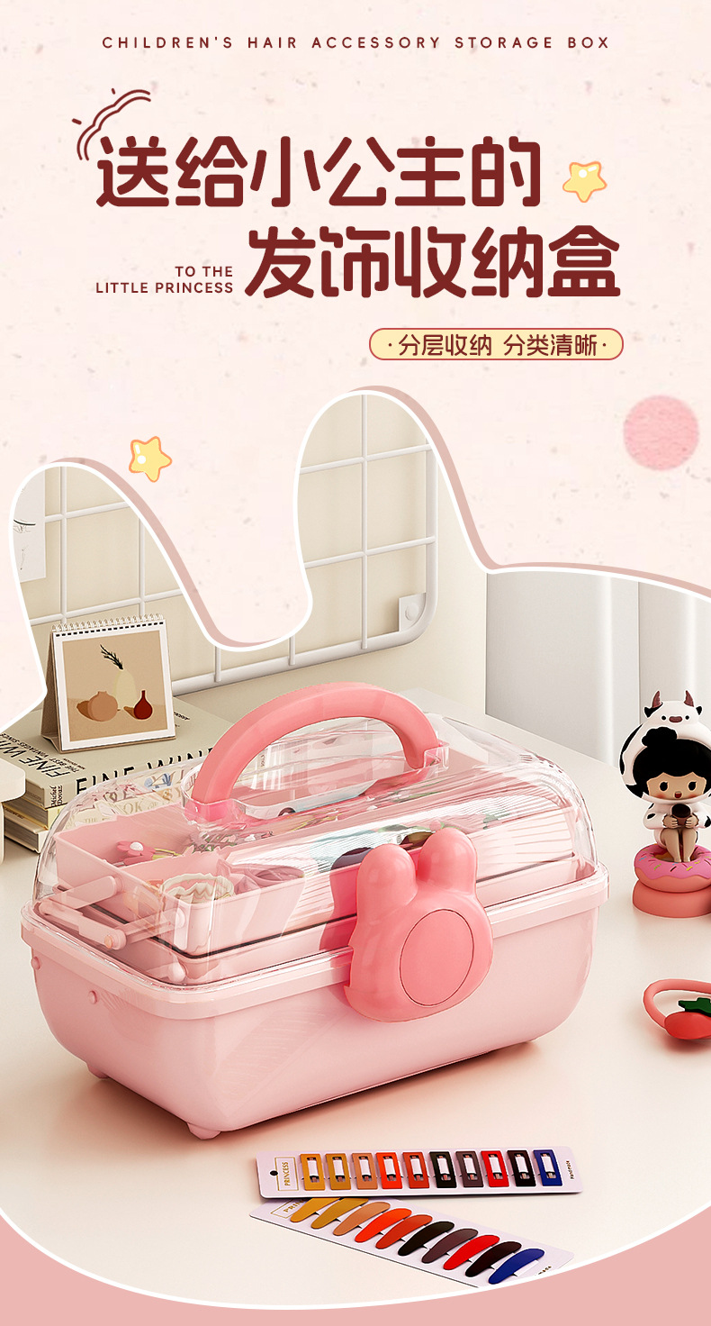 Cautable Hair Accessories Storage Box Children's Hairpin Pink Hairpin Jewelry Cosmetics Desktop Dust-proof Jewelry Storage Box