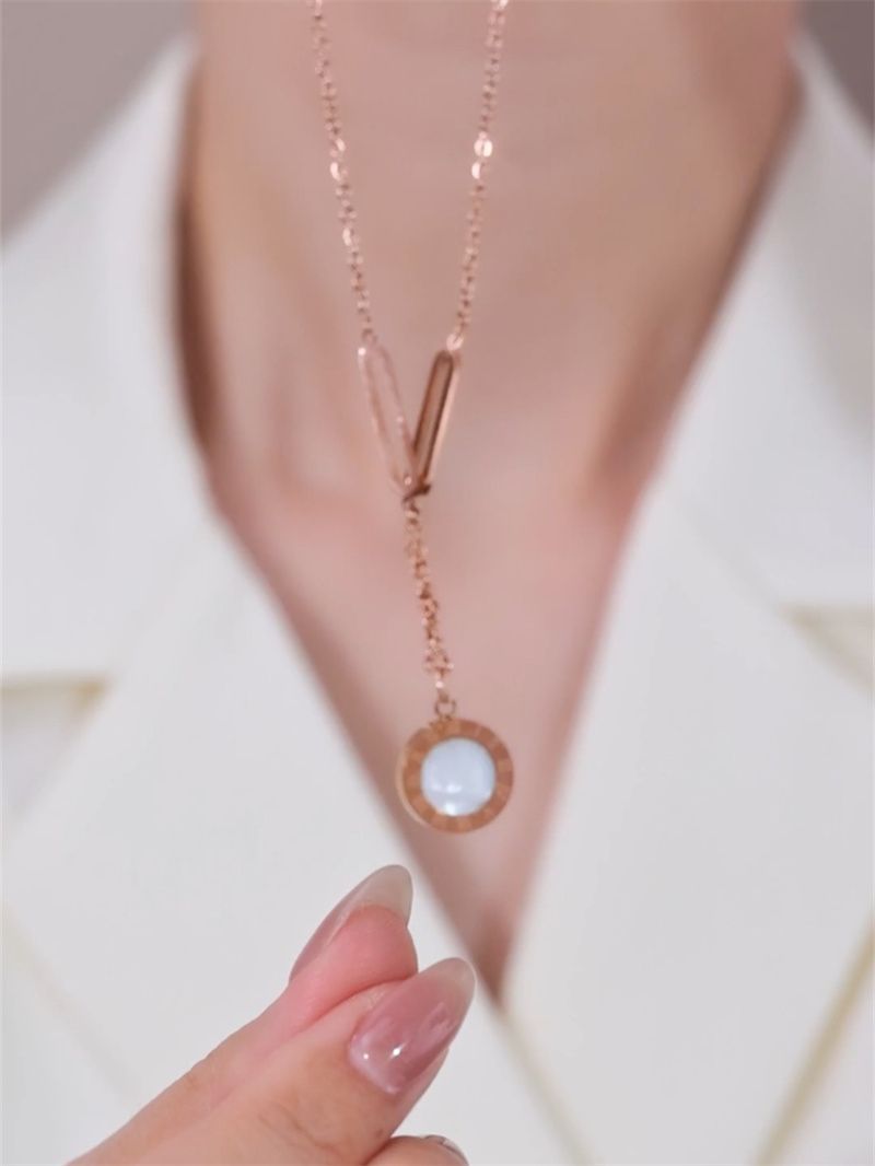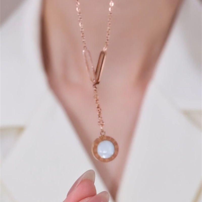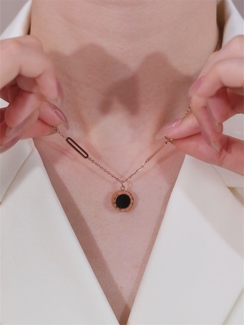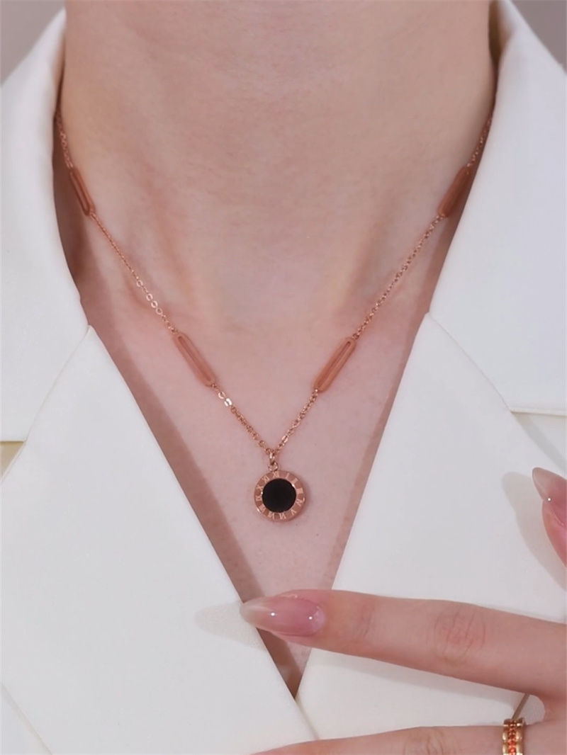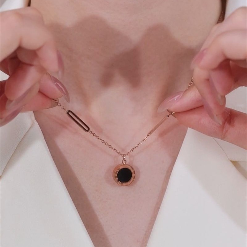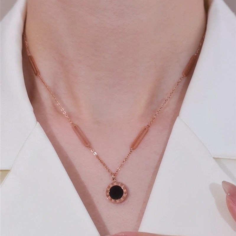 Black and White Double-sided Roman Numerals Disc Clavicle Chain Necklace Women's Rose Gold Design Sense Internet Celebrant All-match Body Accessories
