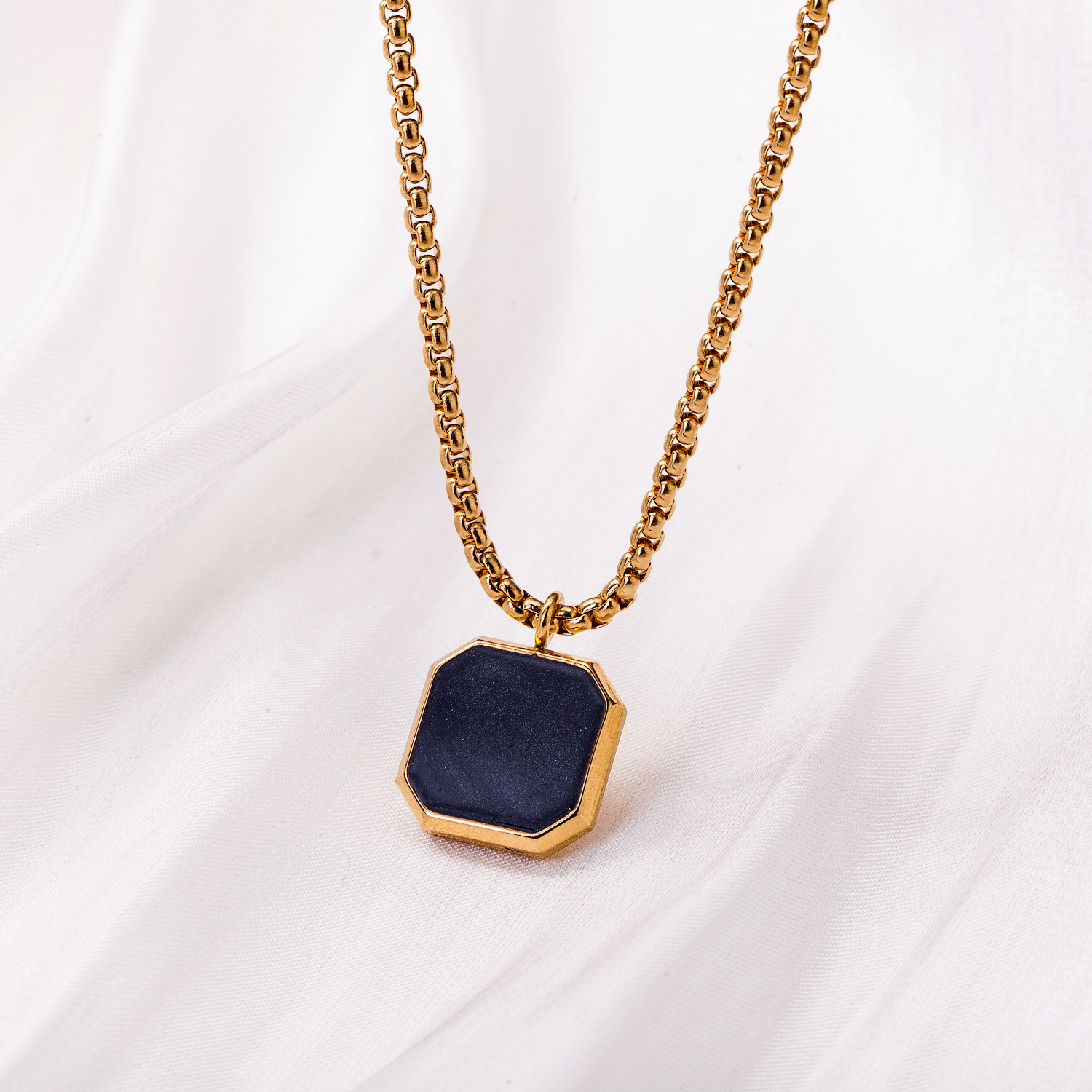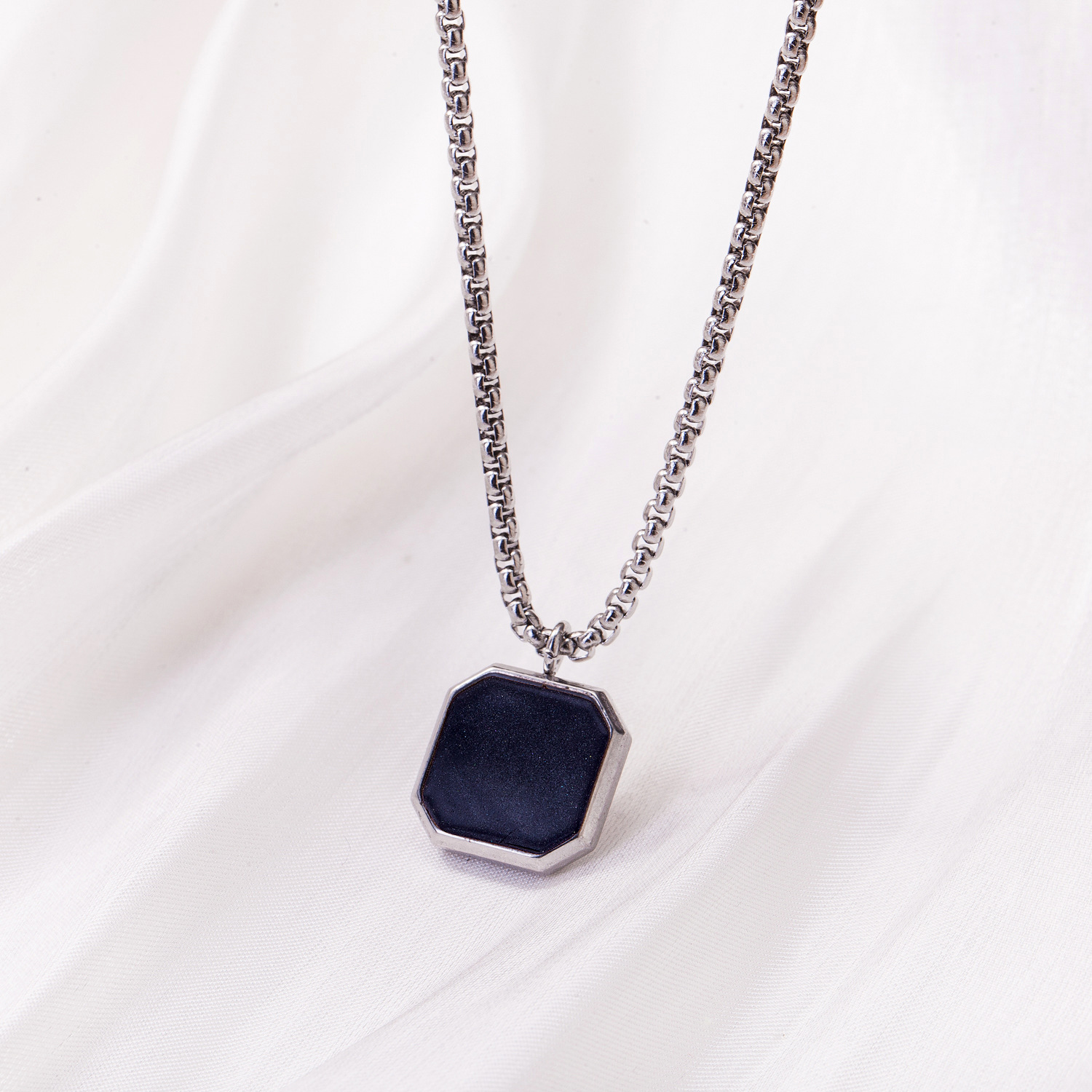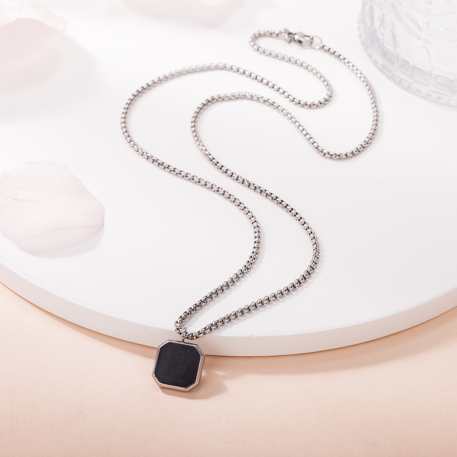 TOHM Simple Square Stainless Steel Men's Pendant Long Woolen Chain Trendy High-grade Sense Square Titanium Steel Oil Drop Necklace