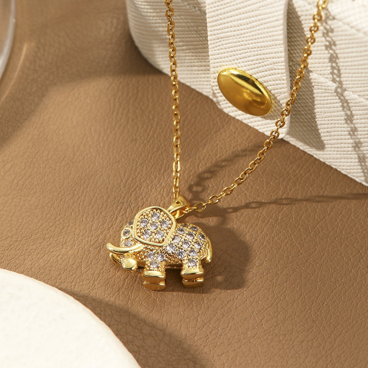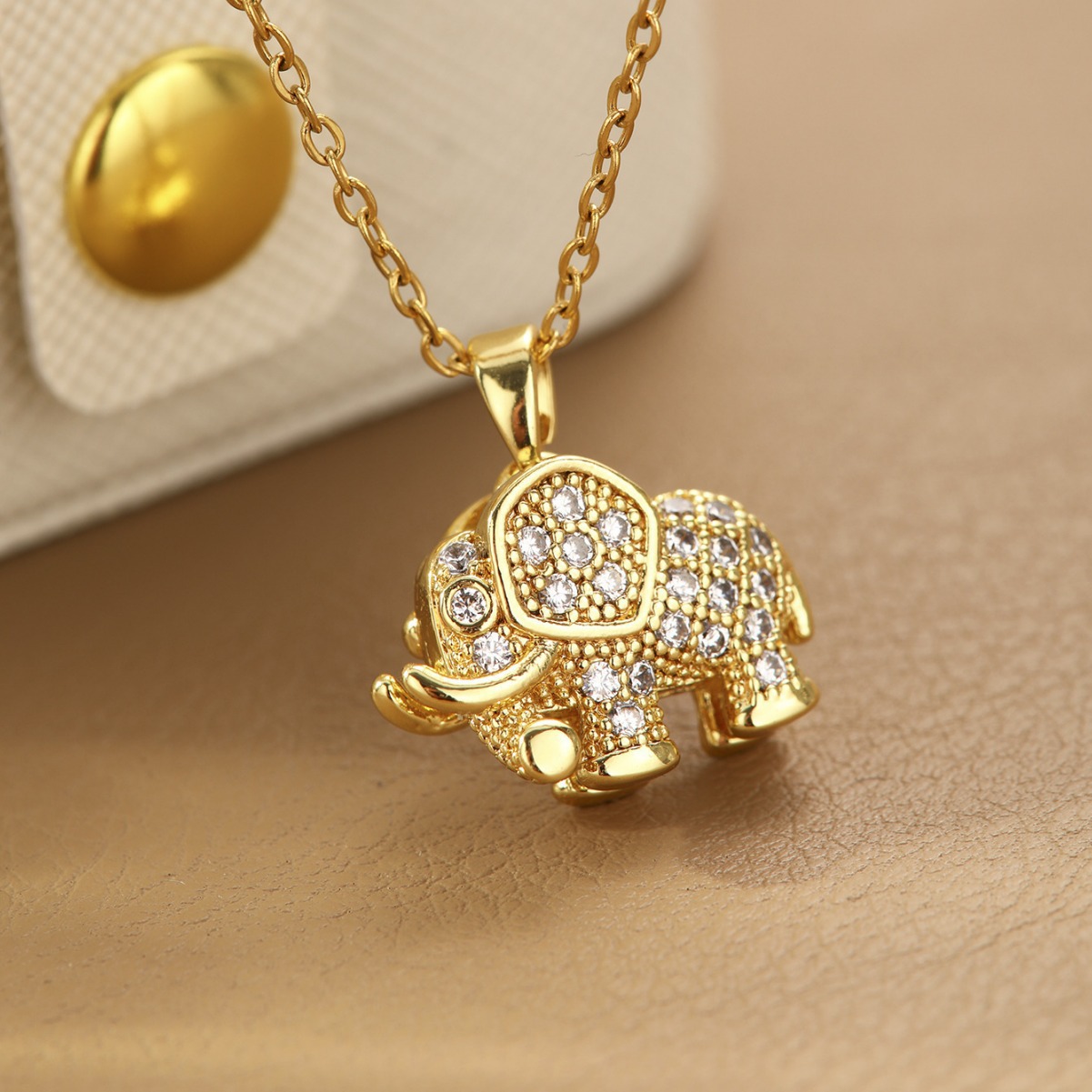 [Titanium Steel] Shiny Cute Little Jixiang Light Luxury Elegant Diamond Necklace Women's All-match Clavicle Chain Titanium Steel Chain