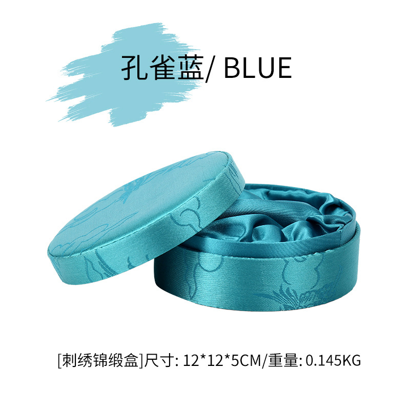 Specification model: Peacock blue (lake blue); embroidered round box 12*12*5cm
