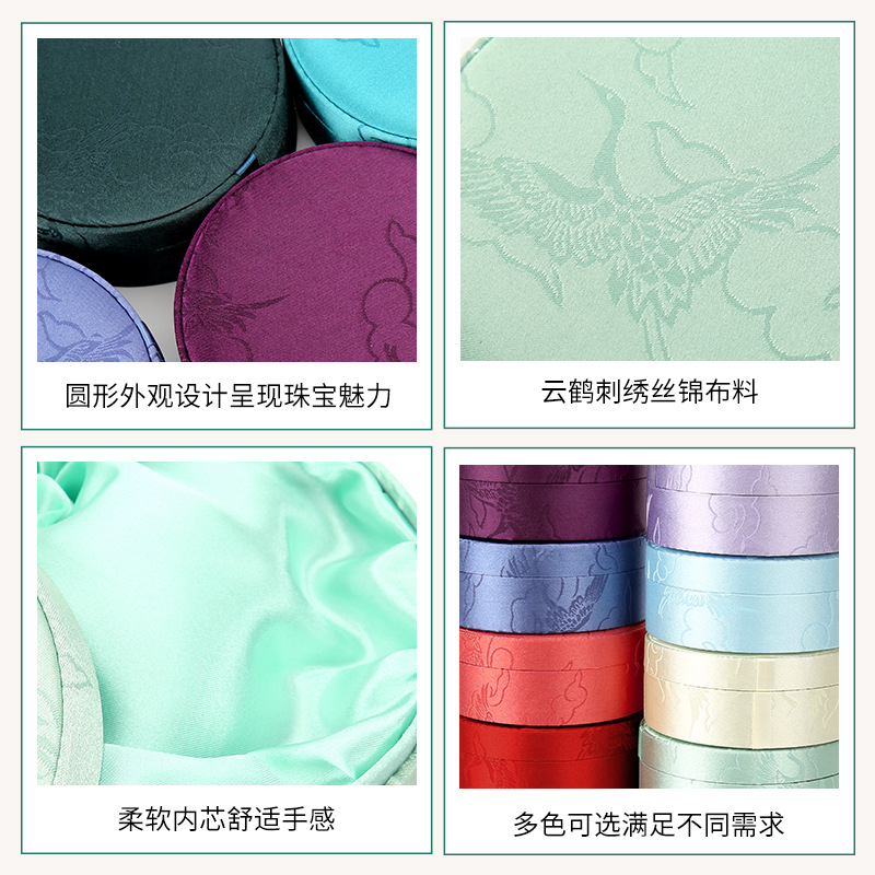 Heaven and earth cover jewelry box: Chinoiserie brocade embroidered round jewelry box