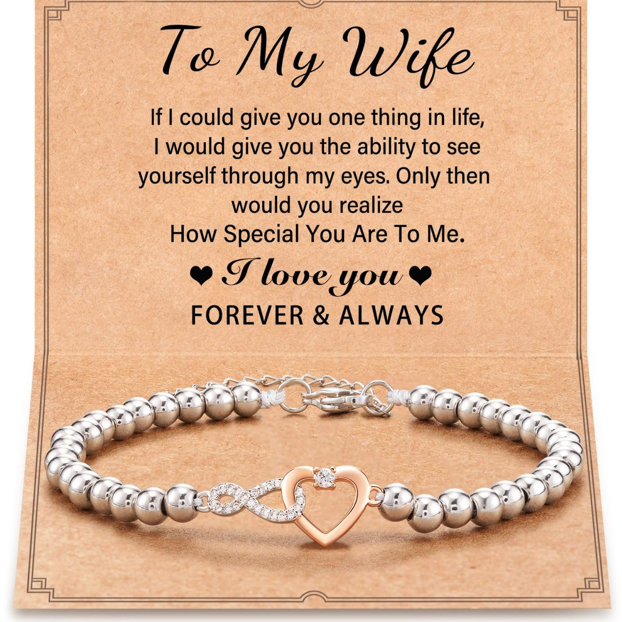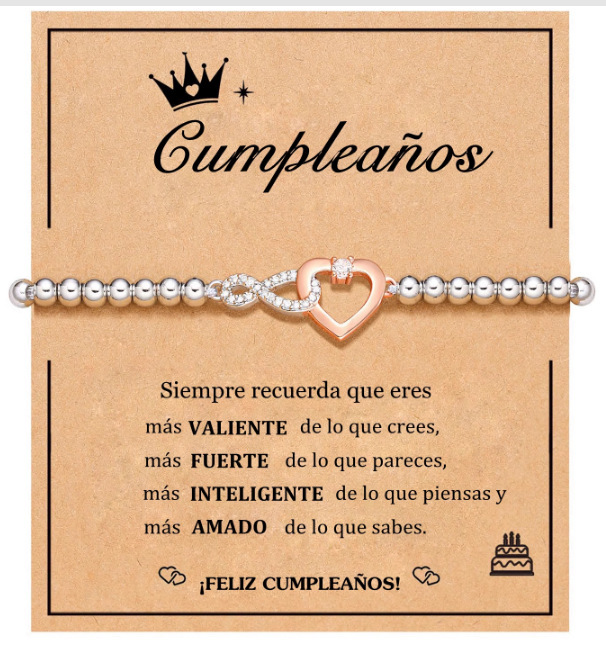 Color: Silver beads infinite love bracelet + gumpleanos card