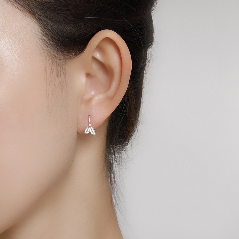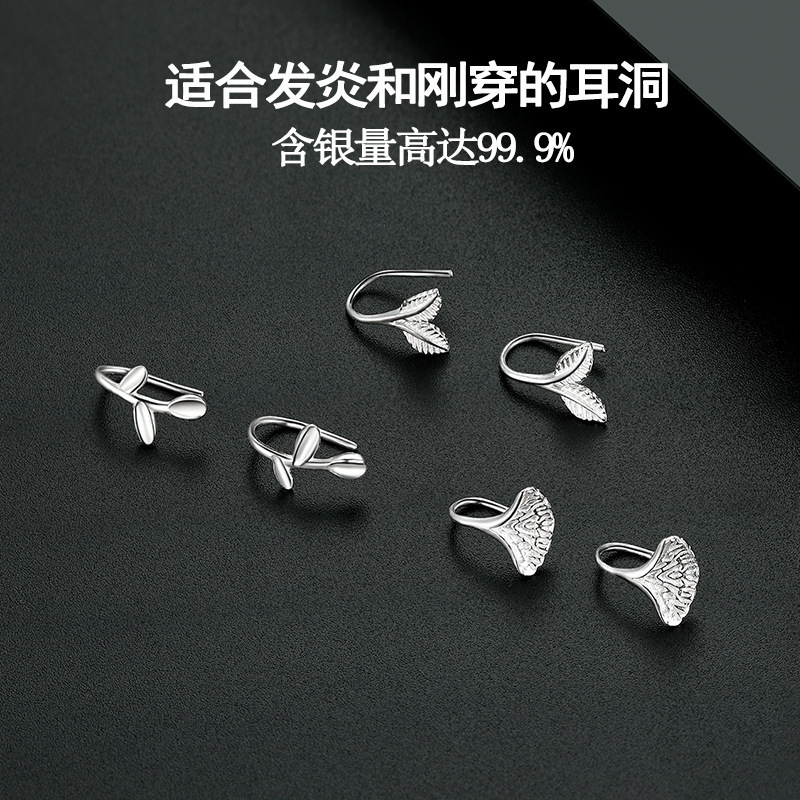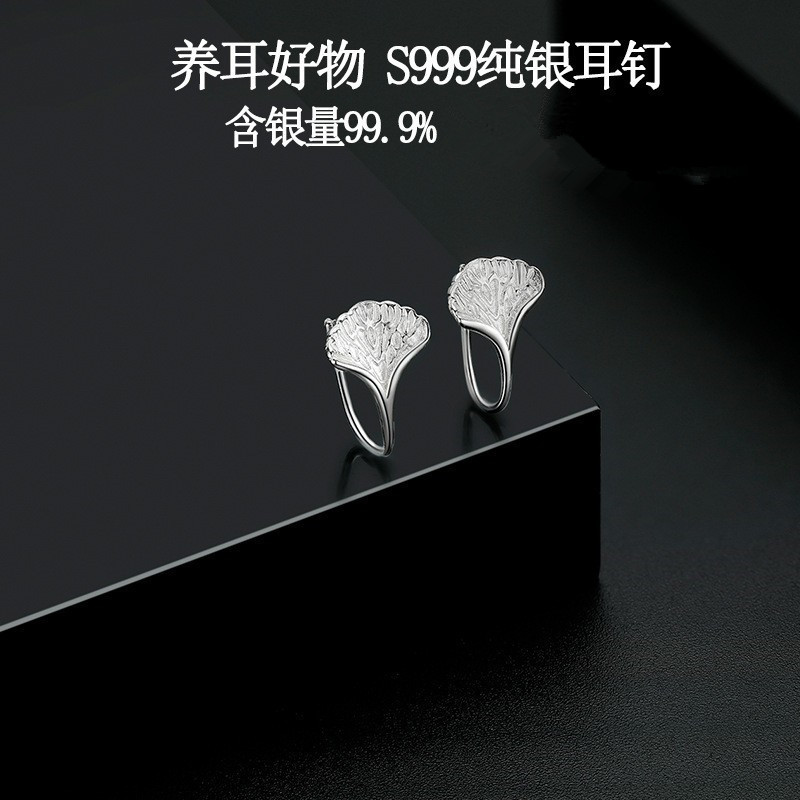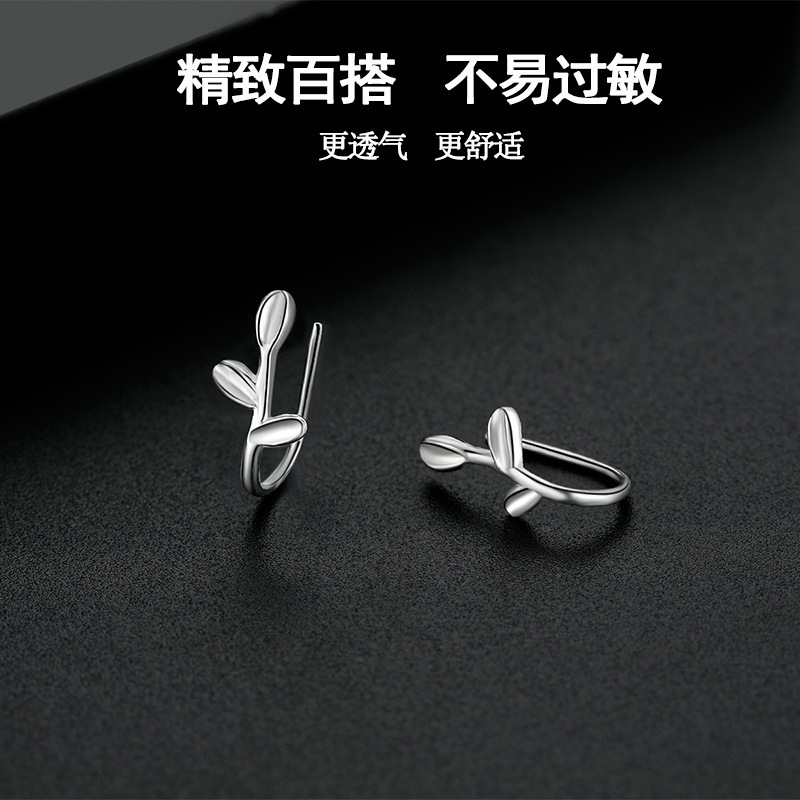 Happy decoration silversmith small bud earrings female S999 sterling silver leaf earrings ear hole feet tremella bone nails earrings wholesale