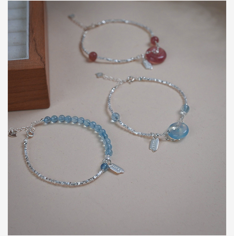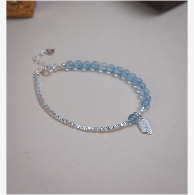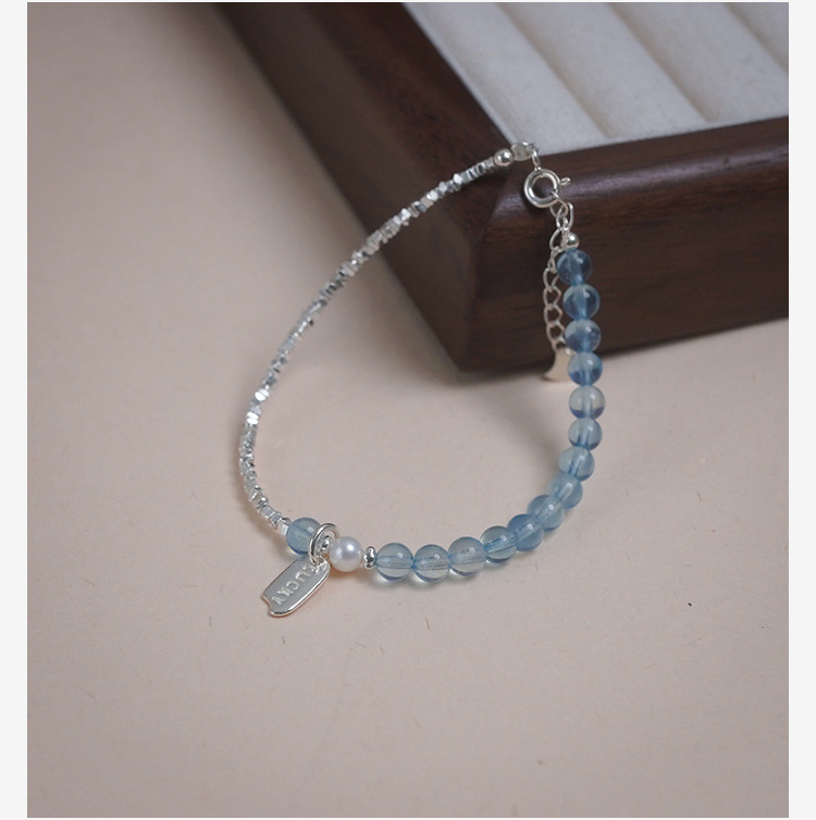Niche Design Sense 925 Sterling Silver Aquamarine Lucky Bracelet Fresh Elegant Bracelet Commuter Bracelet Women's 40409