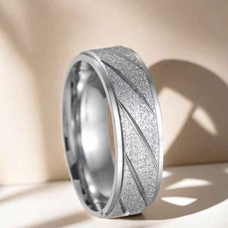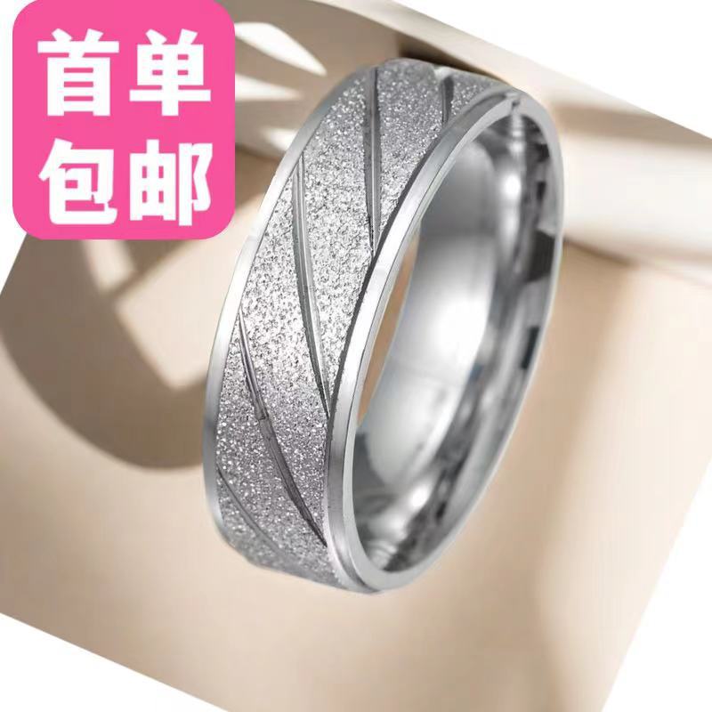Europe and the United States cross-border new fashion decompression men's pressure sand stripe simple wind titanium steel ring Japanese and Korean stainless steel jewelry