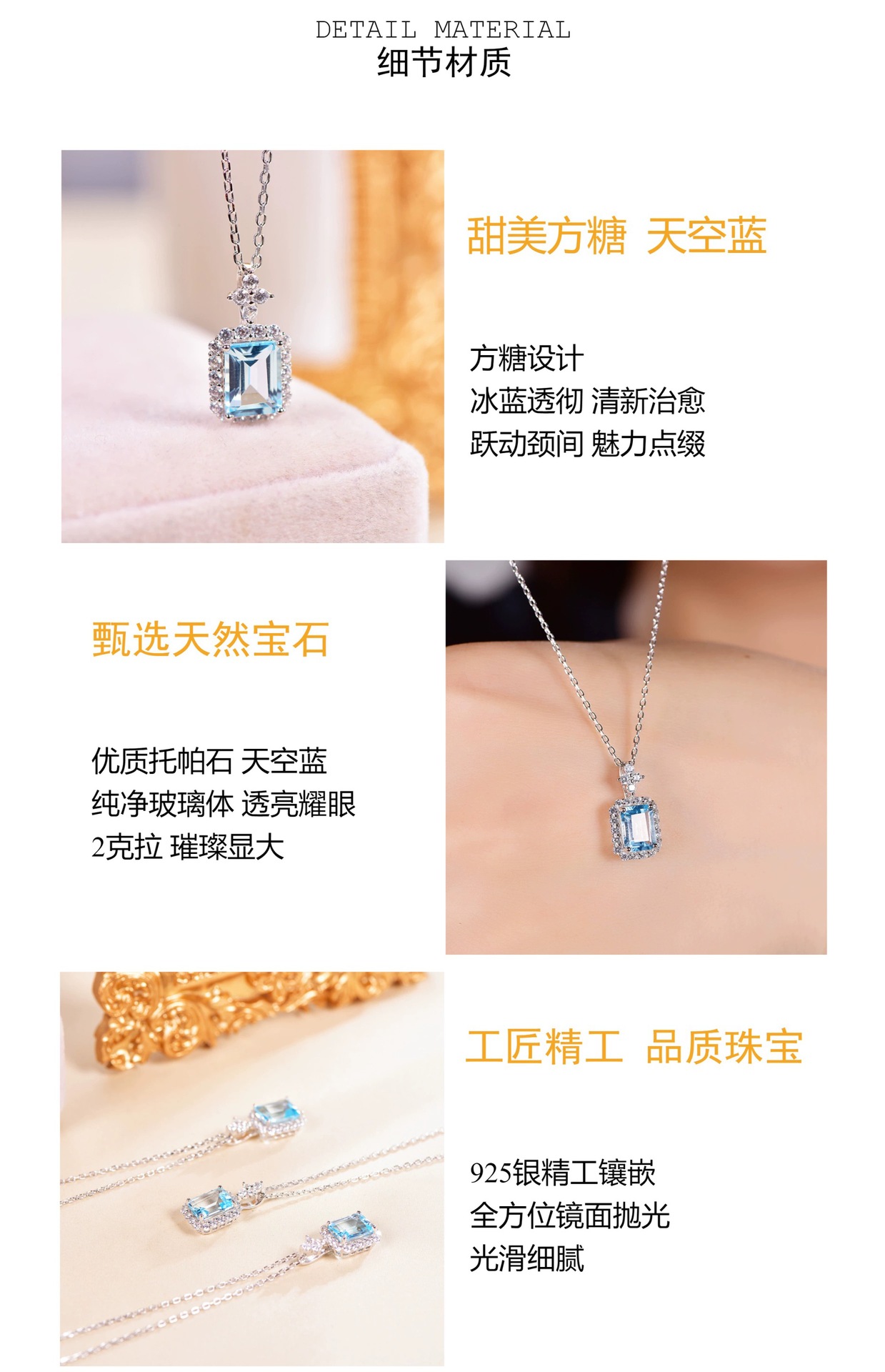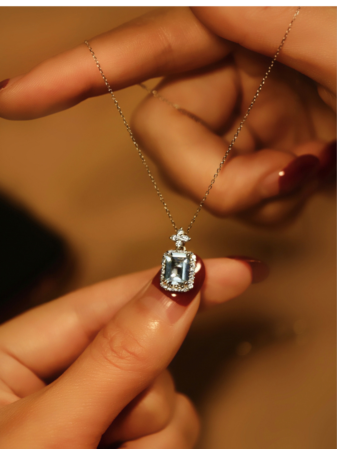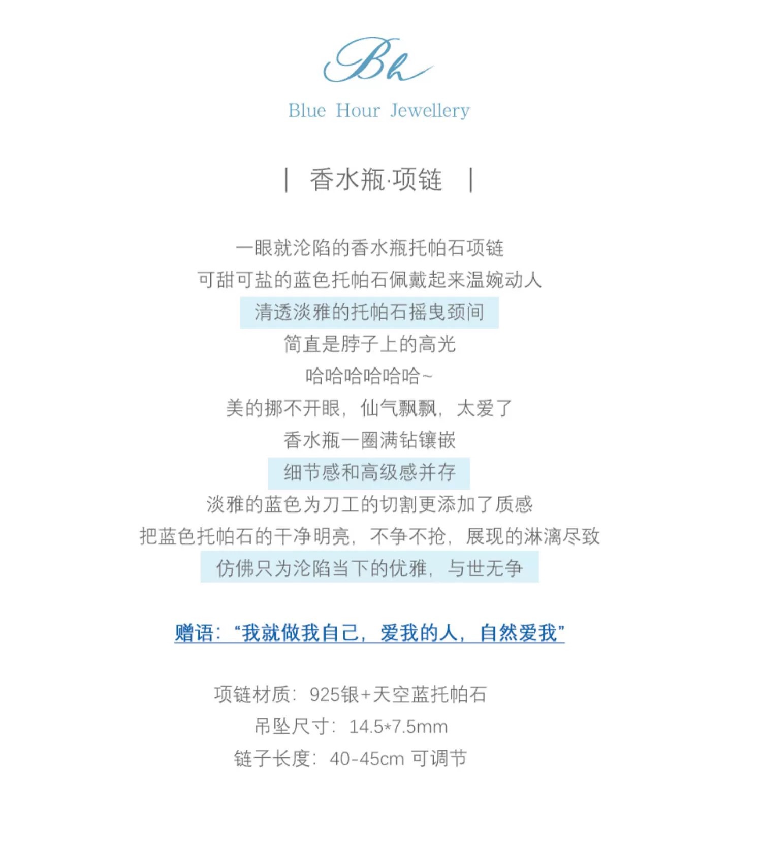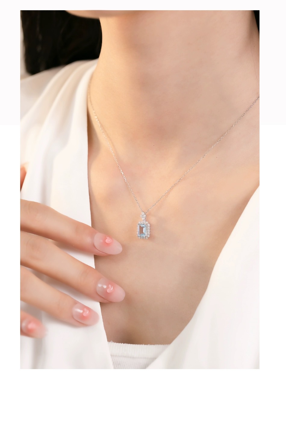 S925 Sterling Silver Necklace Natural Crystal Aquamarine Topaz Necklace Women Light Luxury Perfumery Bottle Niche Silver Pendant