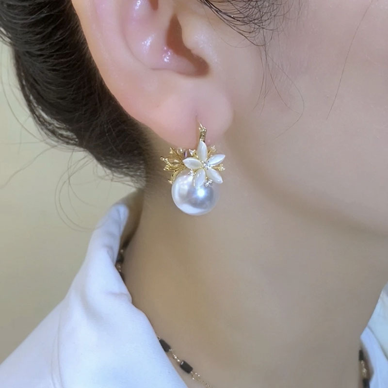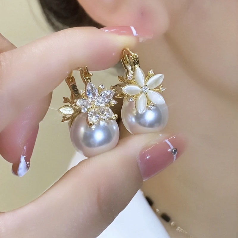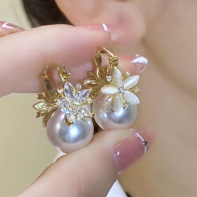 French High-grade Elegant Super Fairy Flower Pearl Ear Buckle Elegant Light Luxury 2024 New Fashion All-match New Earrings