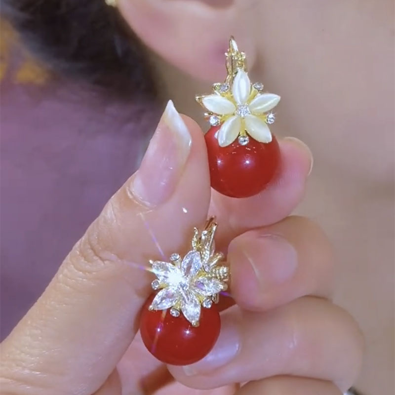 Color: Red flower pearl earrings