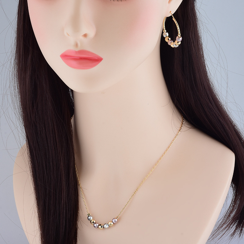 Full-net explosions jewelry set wholesale fashion shiny cut round bead necklace earrings earrings casual classic jewelry
