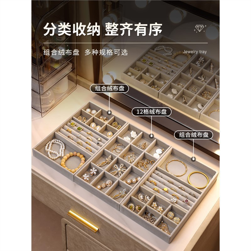 Factory direct jewelry storage gray 2024 new tray jewelry box earrings ring necklace watch display plate
