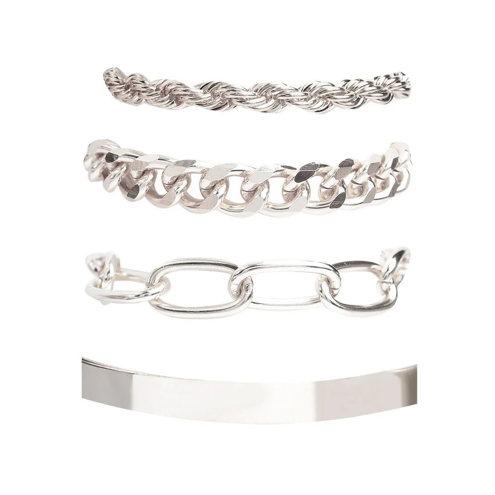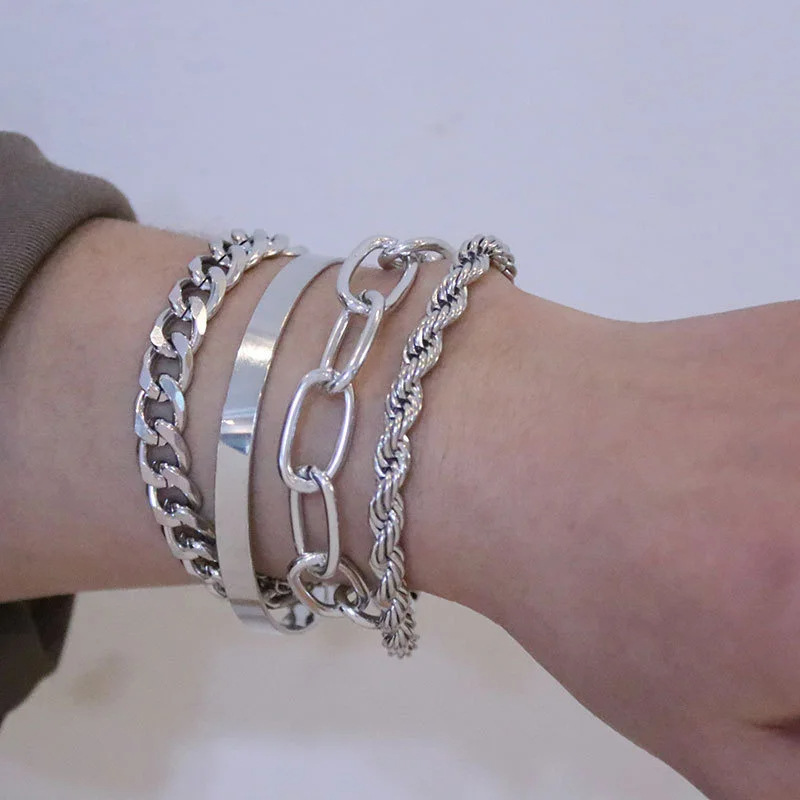 European and American Style Jewelry Simple Smooth Bracelet Twist Chain Hip-Hop Four-Piece Set Handmade Women's Bracelet Manufacturer Geometric Lines