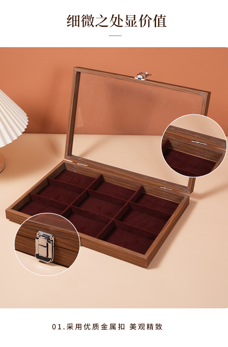 Color: Black walnut wood grain 9 compartment box