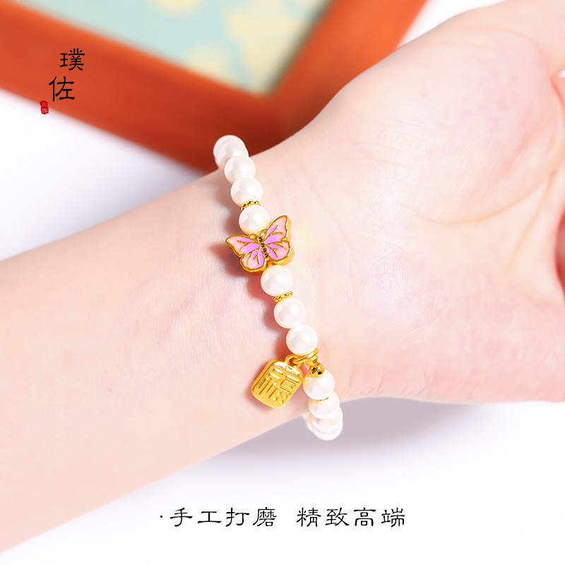 Gold shop with strong color retention Vietnamese gold burning blue butterfly pearl lucky bracelet bracelet diy all-match hand ornaments for women