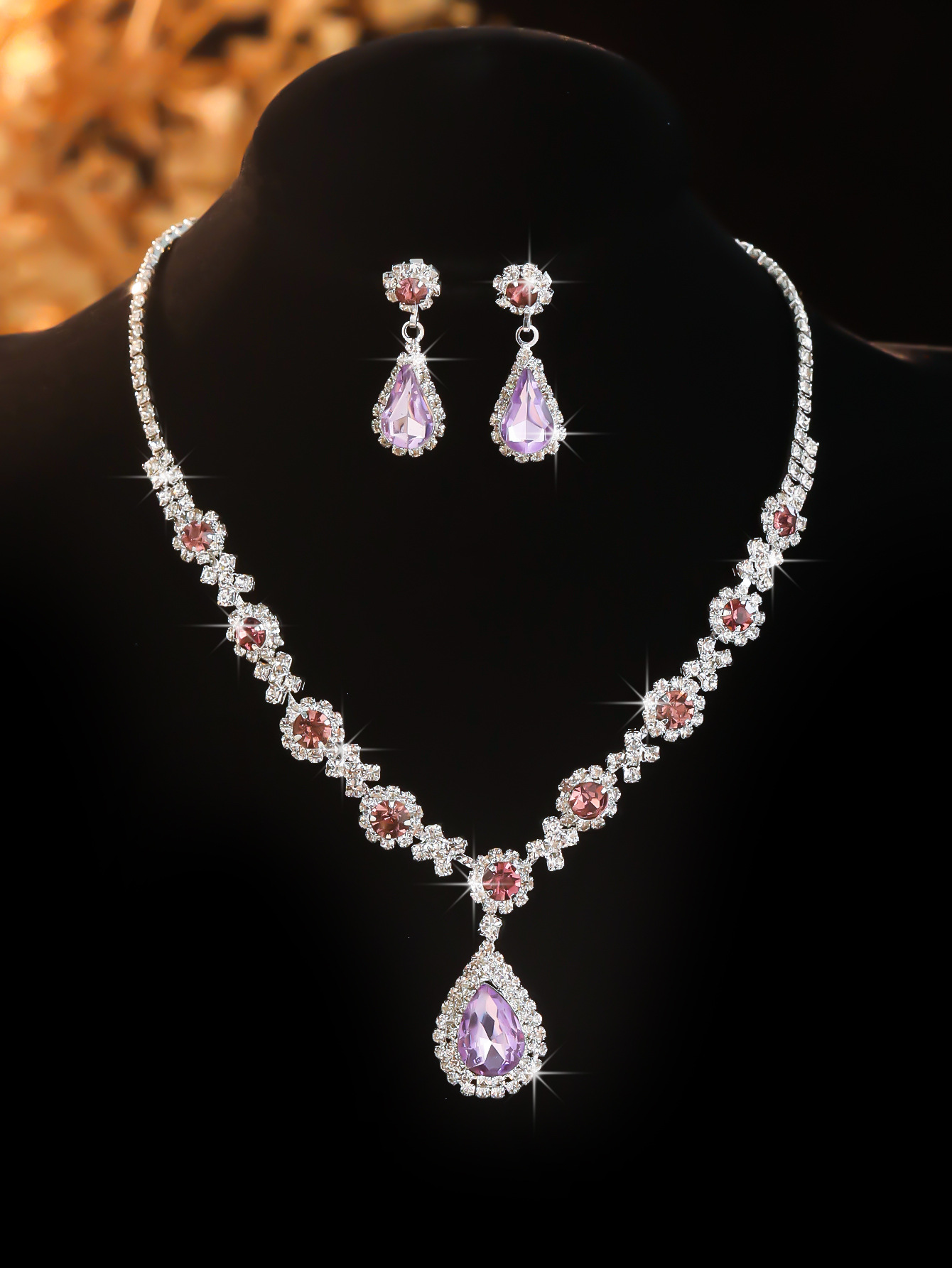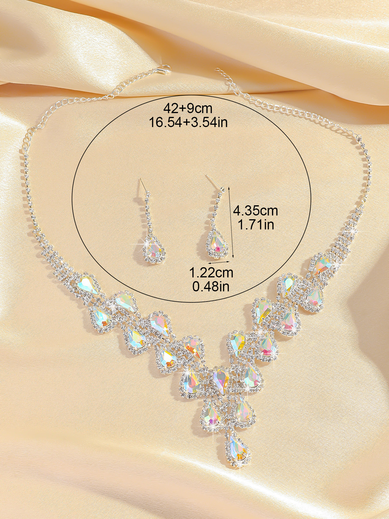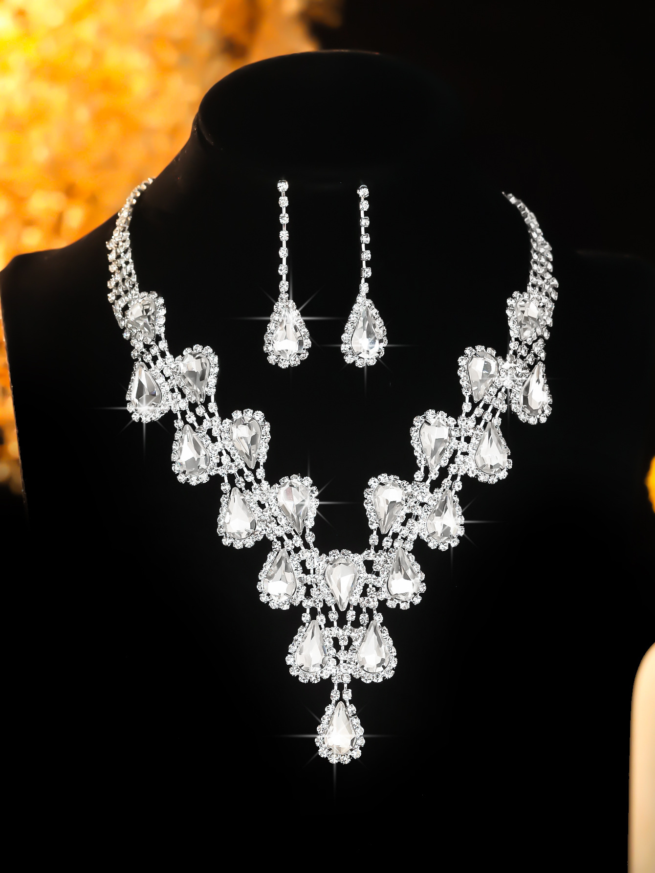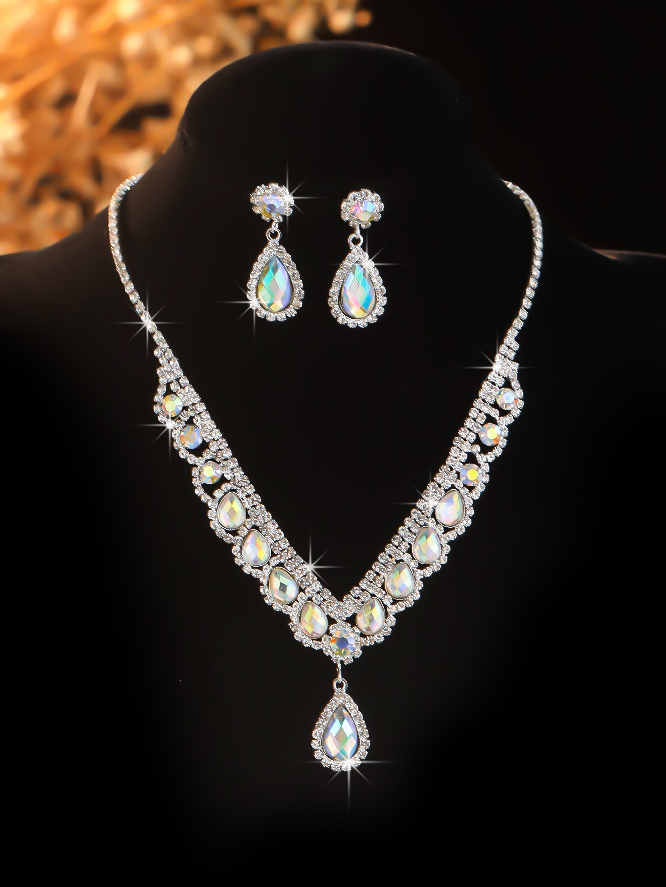 Color: T0025-2 ab diamond water drop necklace set