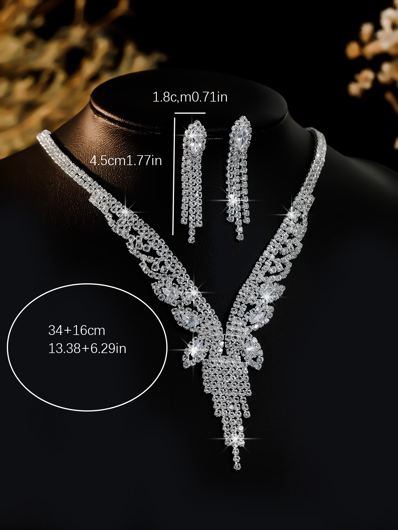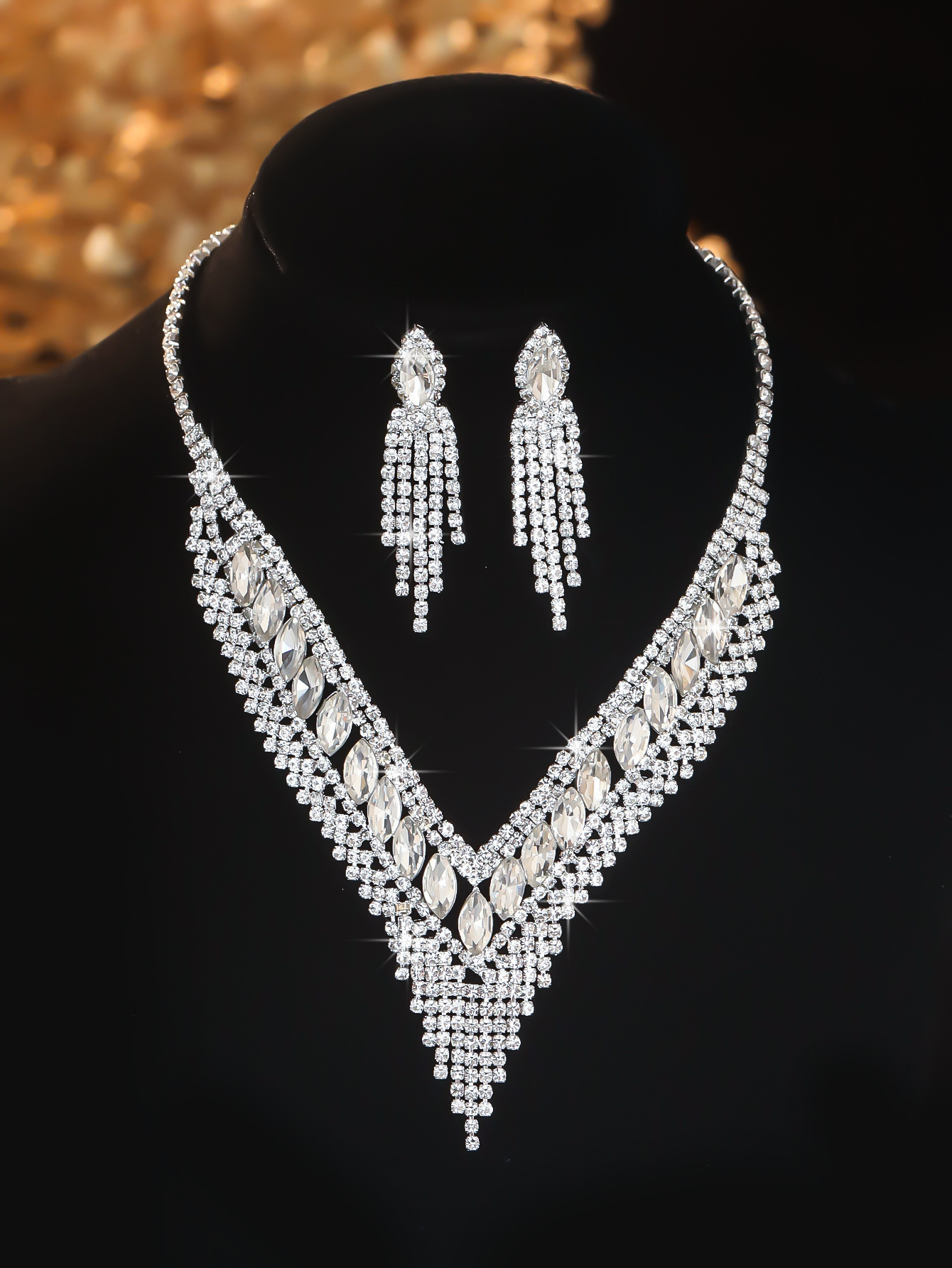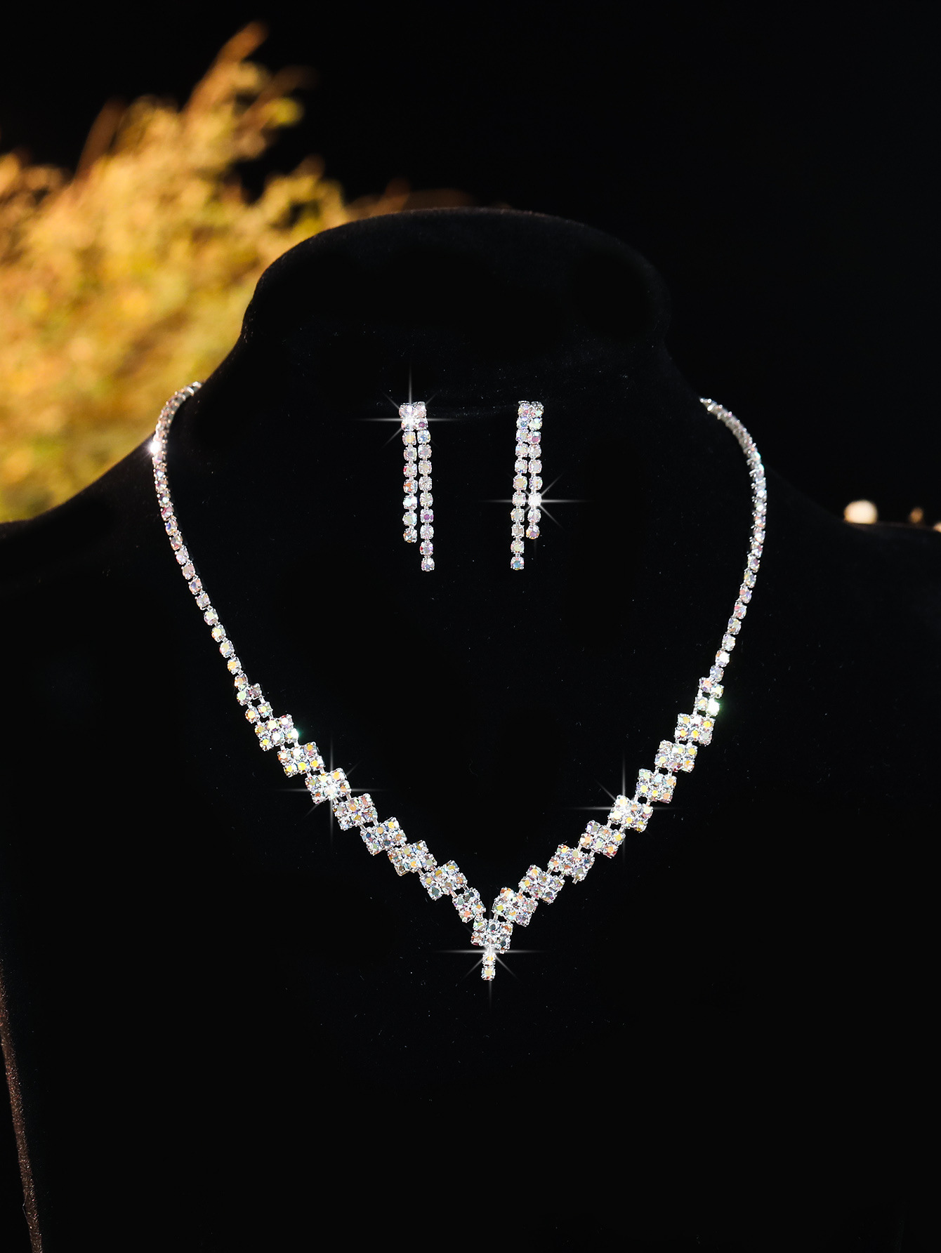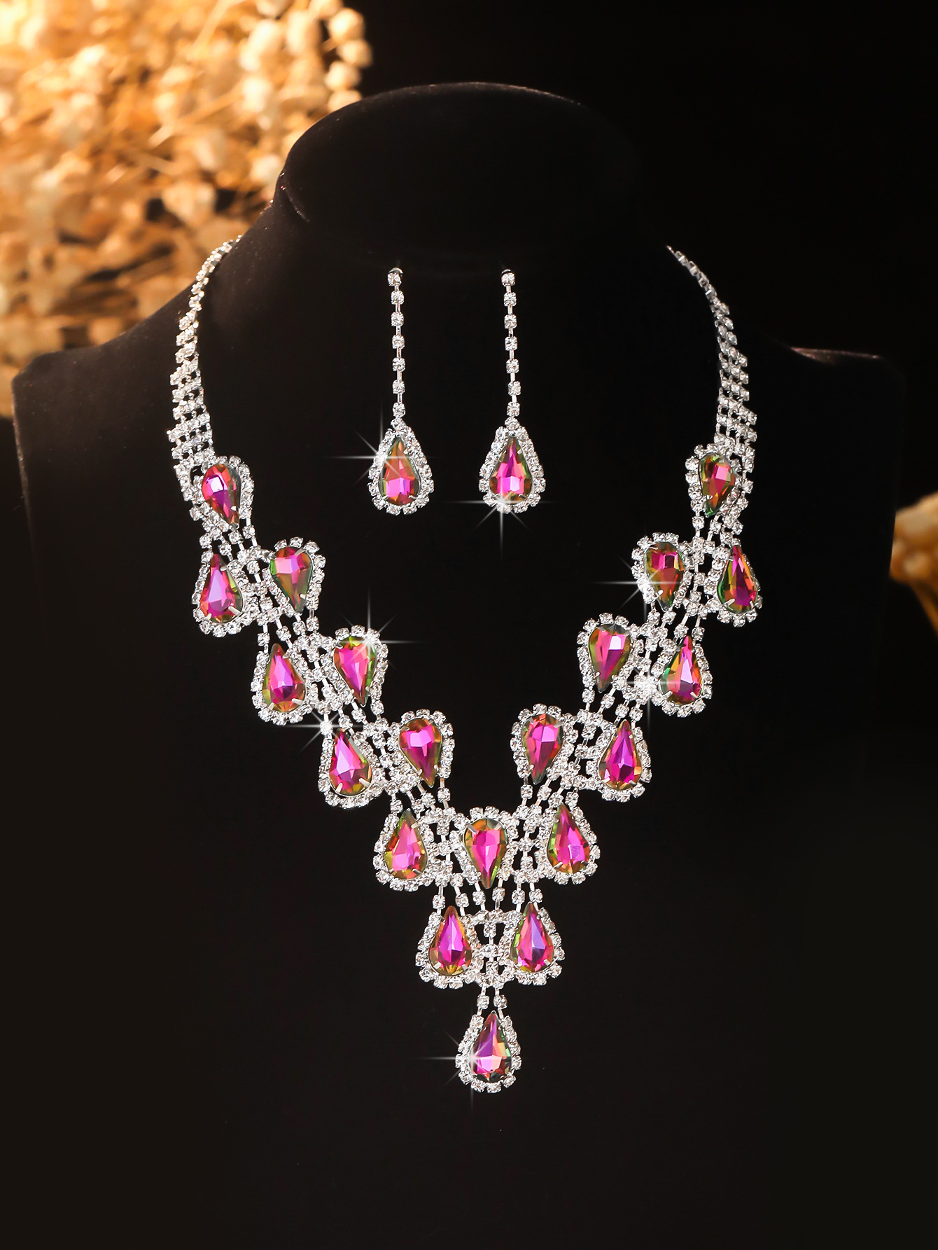 Color: T0025-2 ab diamond water drop necklace set