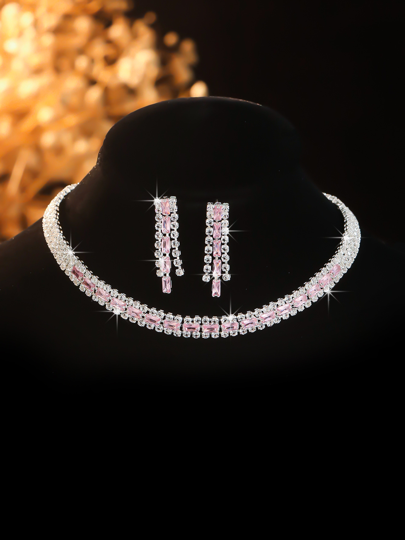 Color: T0016-6 pink crystal necklace set