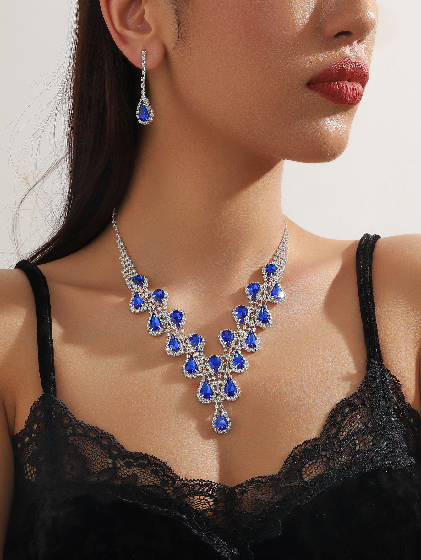 Color: T0096-3 royal blue water drop necklace set