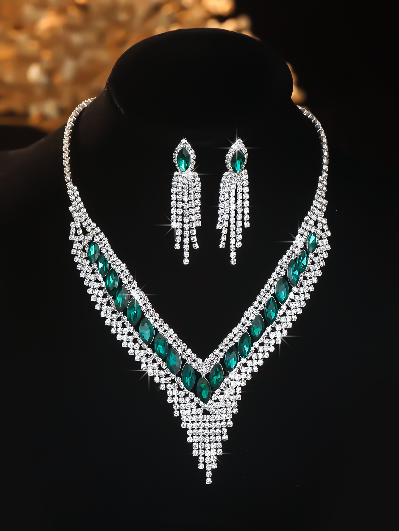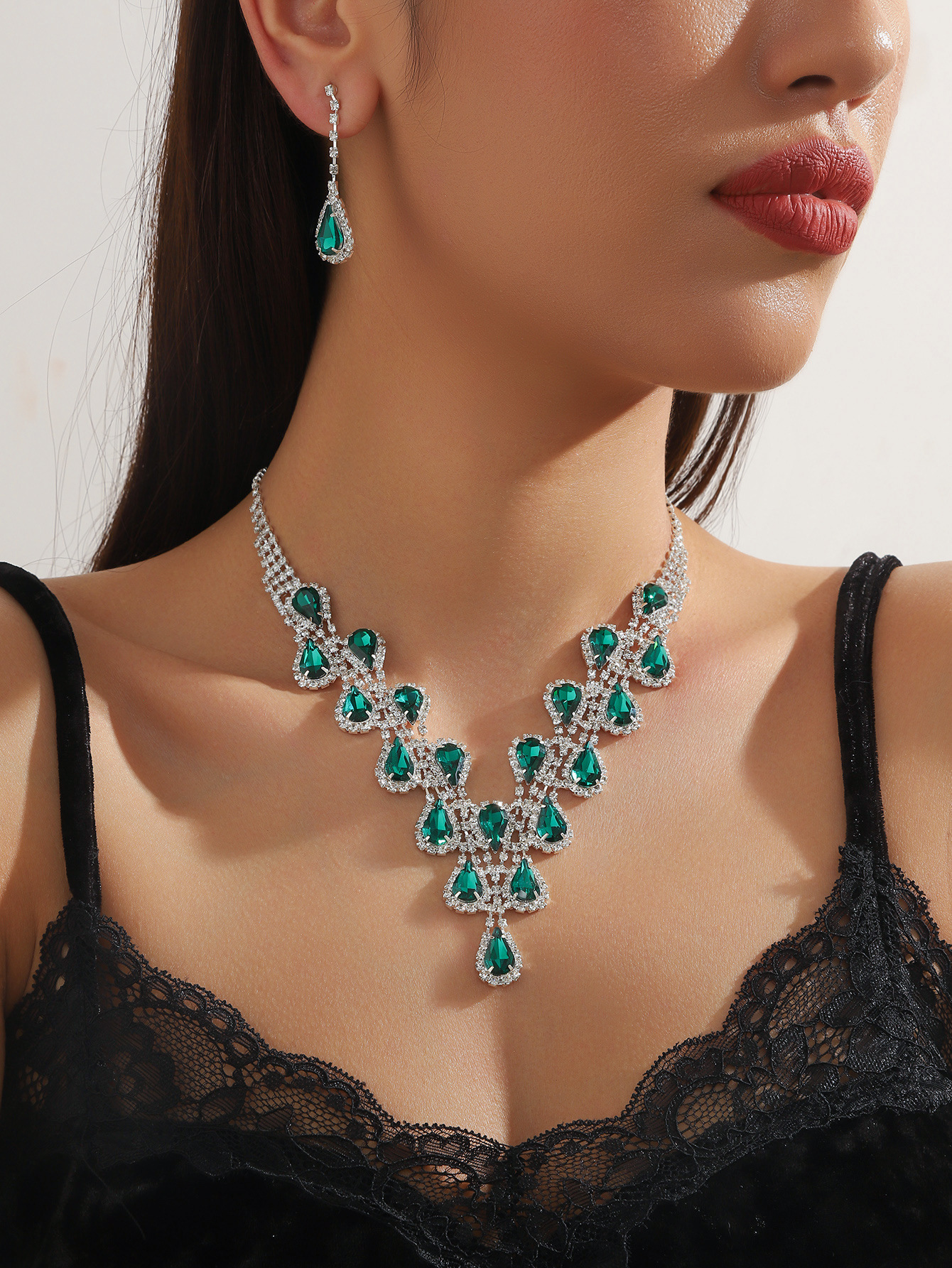 Color: T0010 dark green crystal necklace set