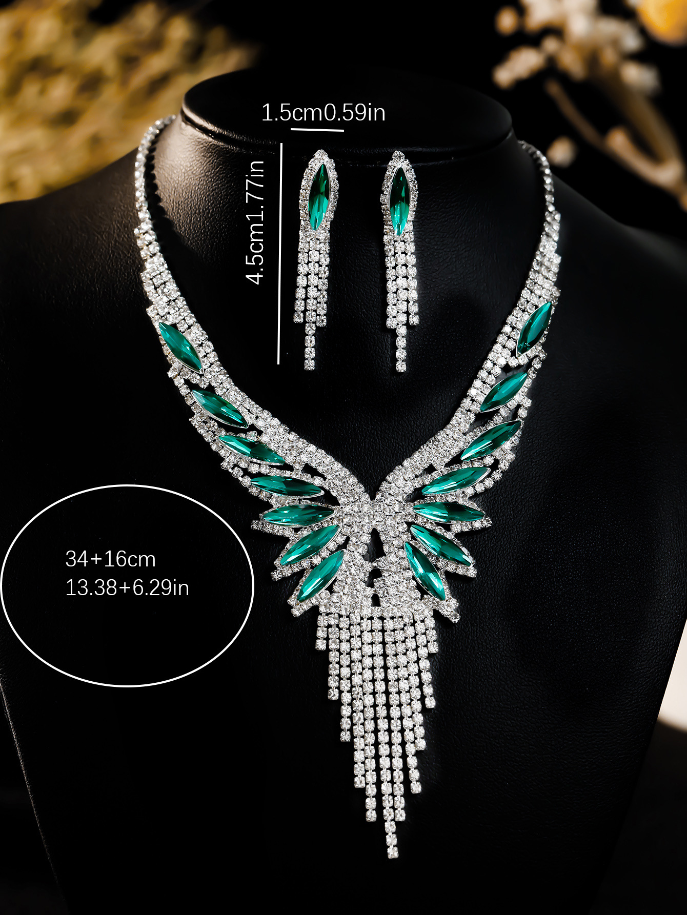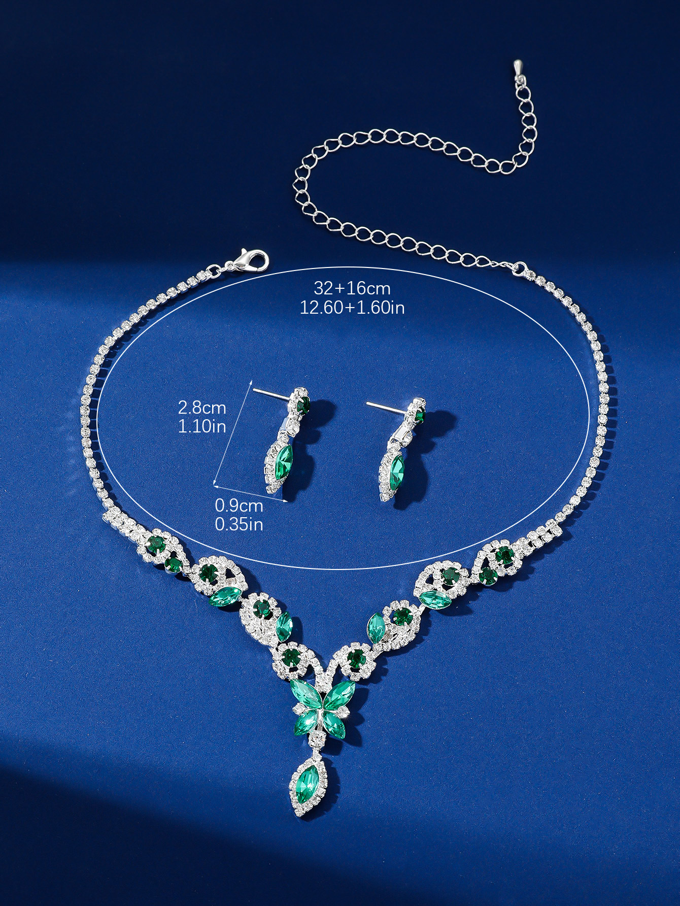 Color: T0029 dark green flower crystal necklace set