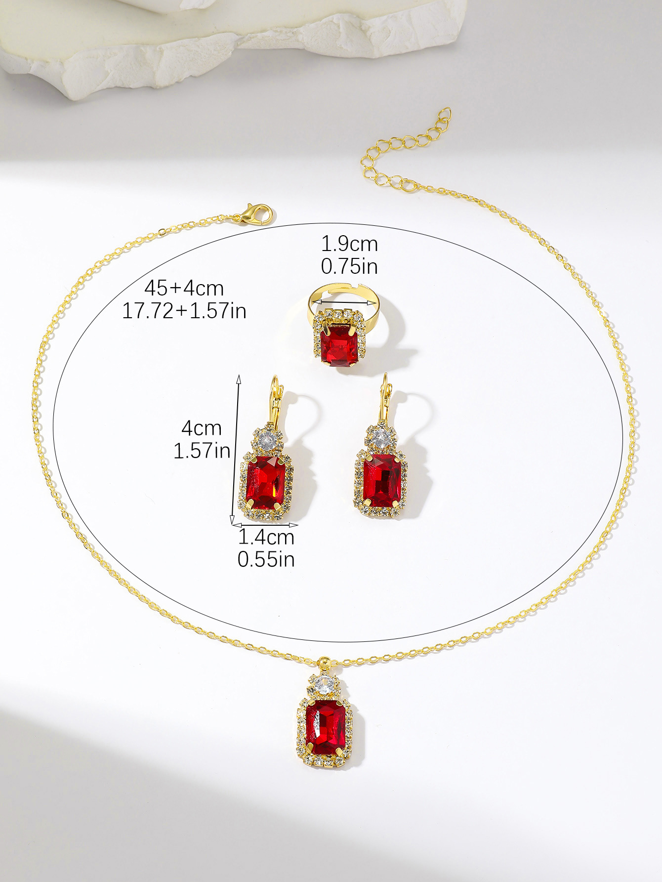 Color: T0079-1 red zirconium gold necklace set