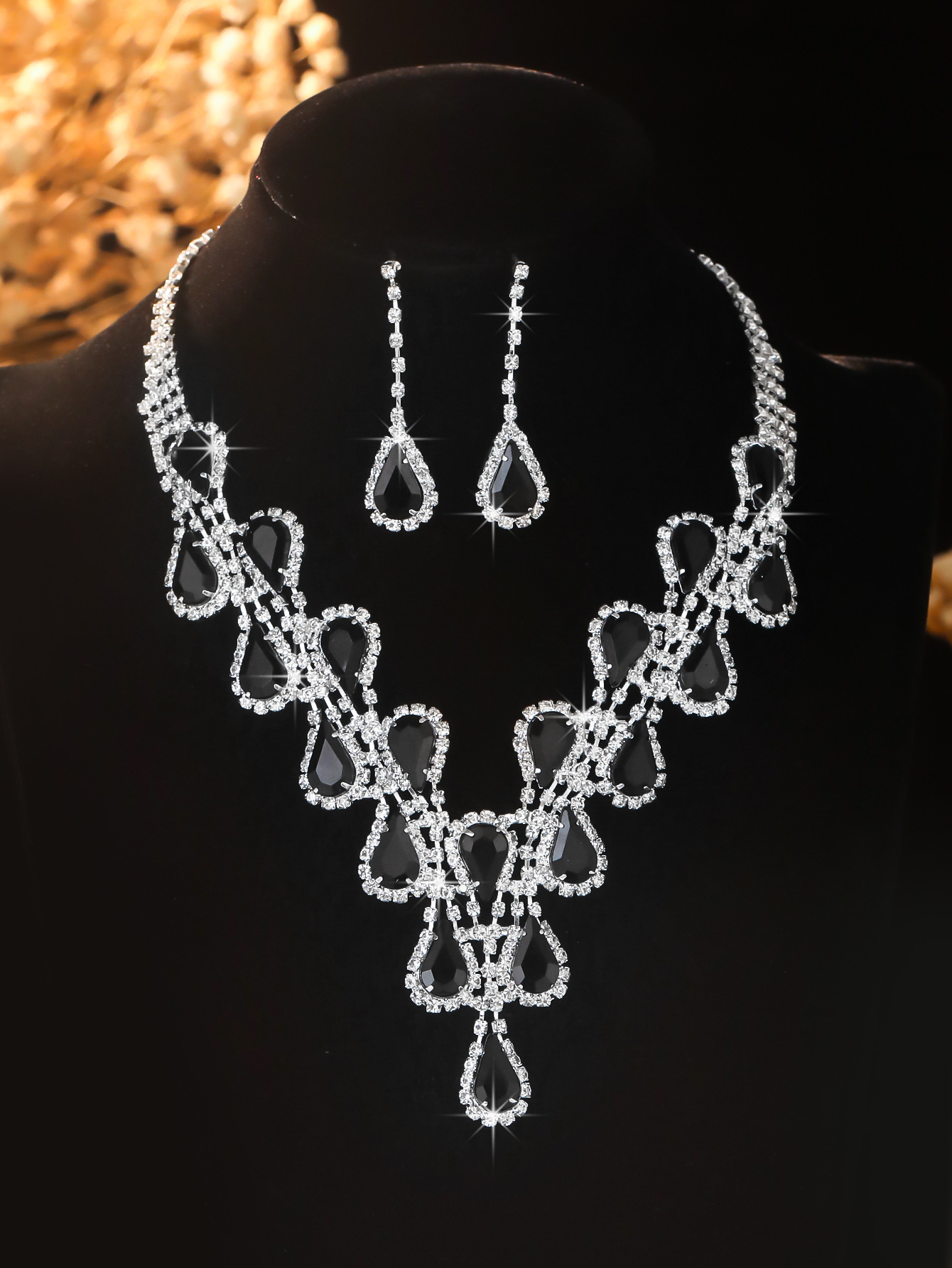 Color: T0041-3 black water drop necklace set