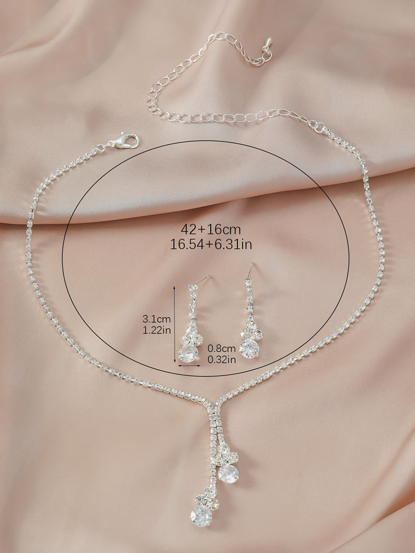 Color: T0079-5 champagne zirconium silver necklace set