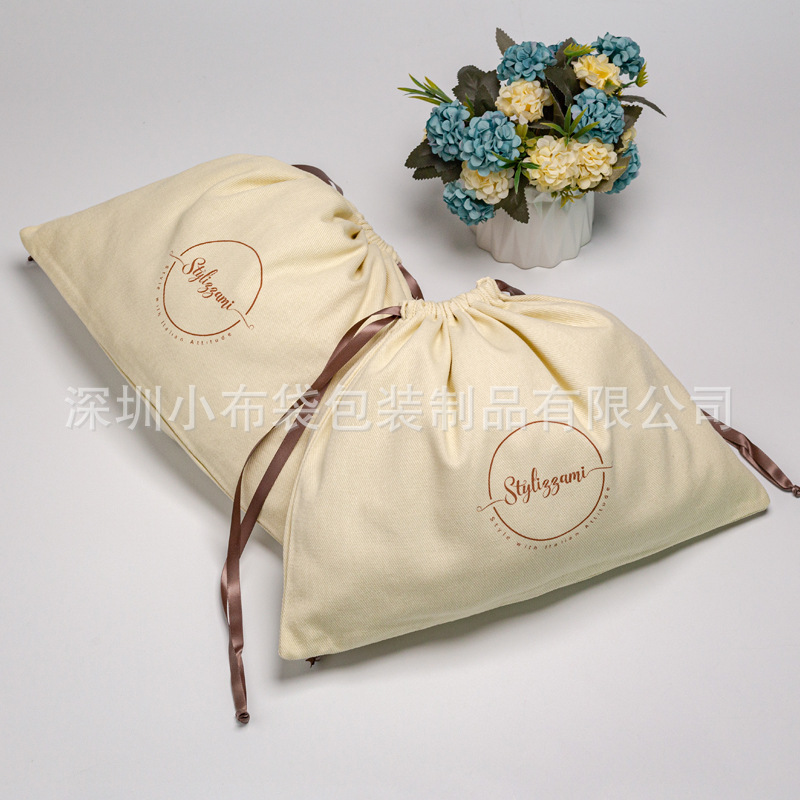 Twill Cotton Bag Threaded Ribbon Canvas Drawstring Pocket Cosmetic Pure Cotton Cotton Bag Jewelry Storage