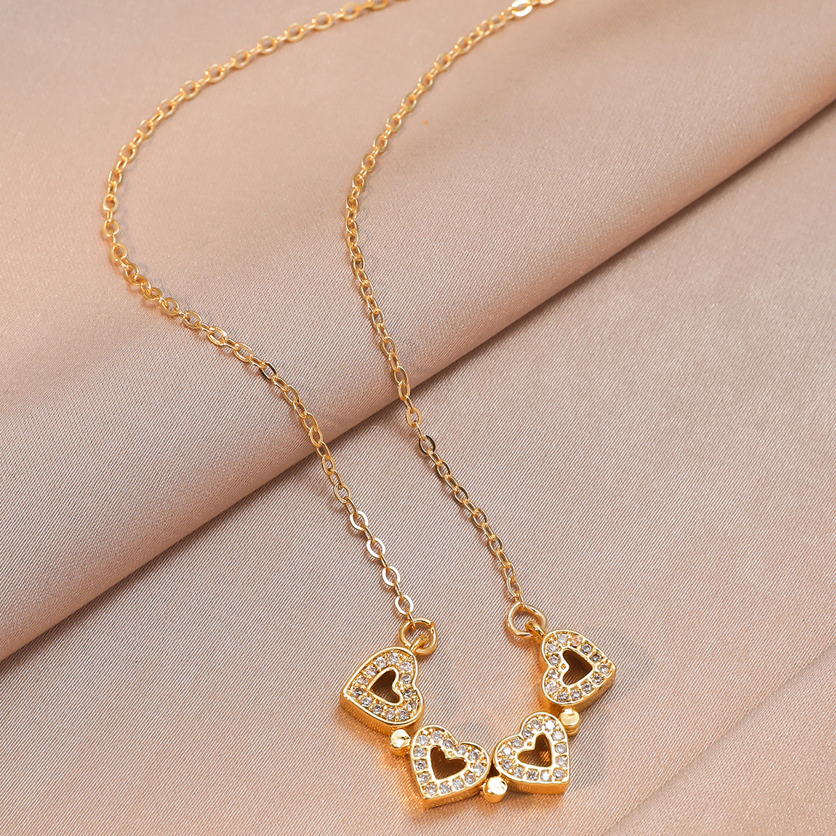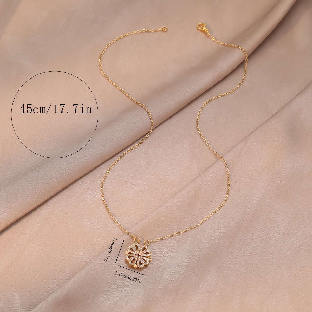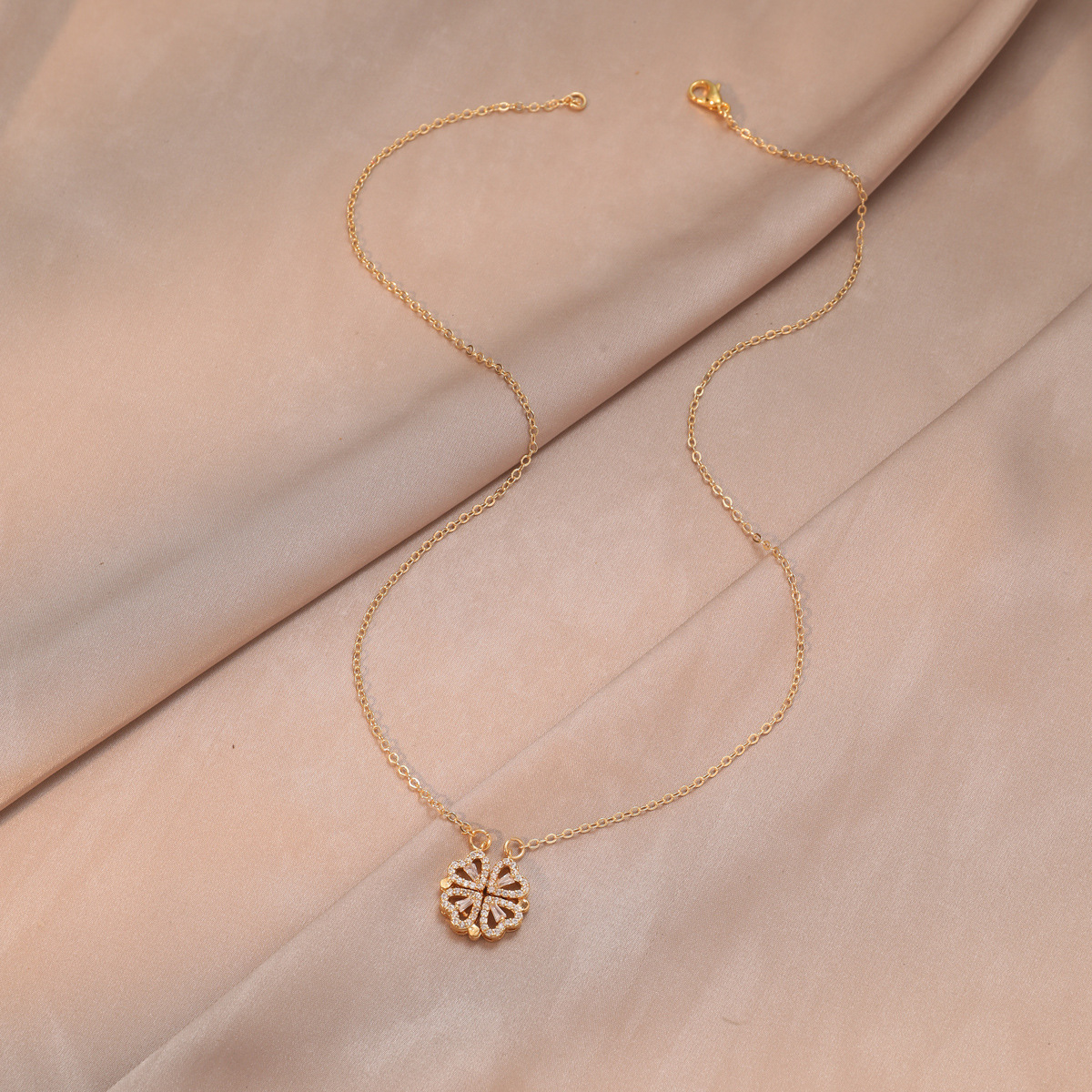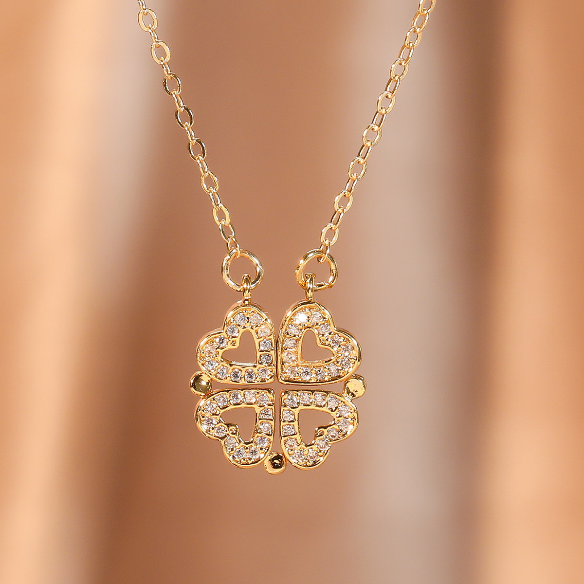 One Piece Compact Four-leaf Clover Necklace Fashion Magnetic Folding Heart Necklace Copper Micro Set 18K Electroplated Gold 4 Hearts