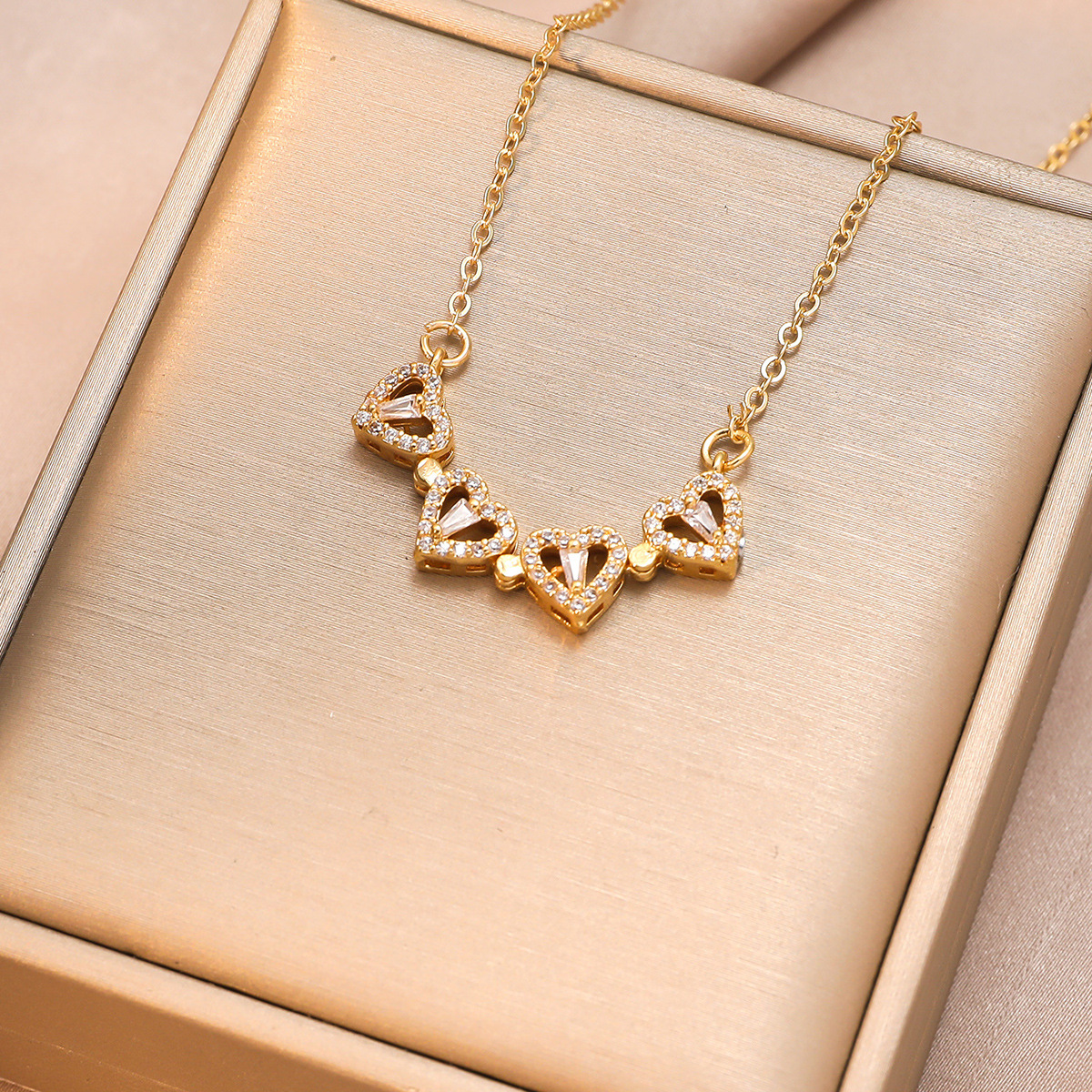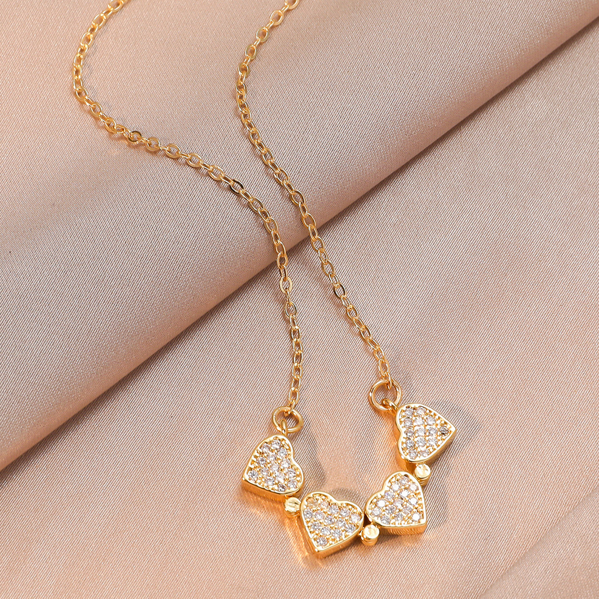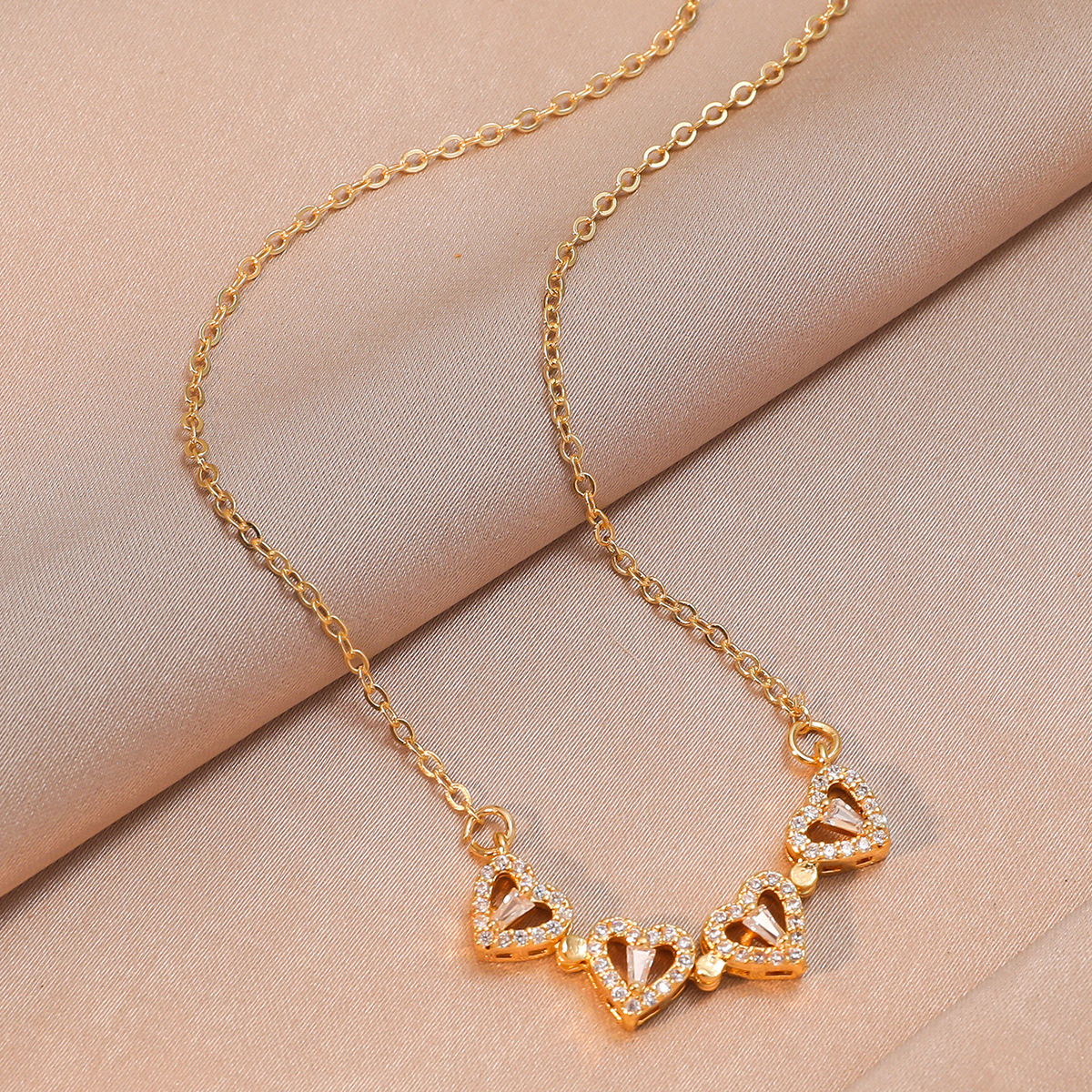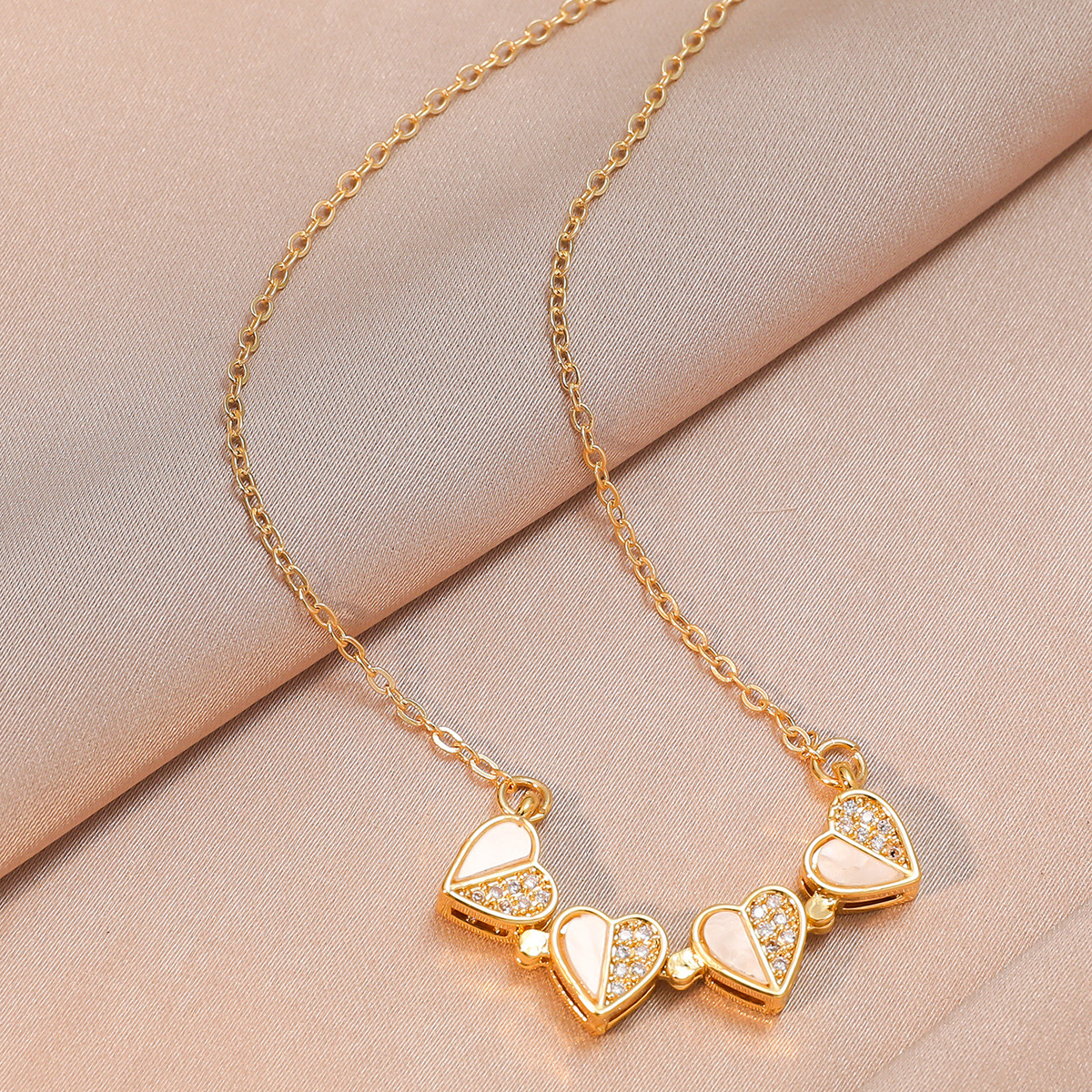 One Piece Compact Four-leaf Clover Necklace Fashion Magnetic Folding Heart Necklace Copper Micro Set 18K Electroplated Gold 4 Hearts