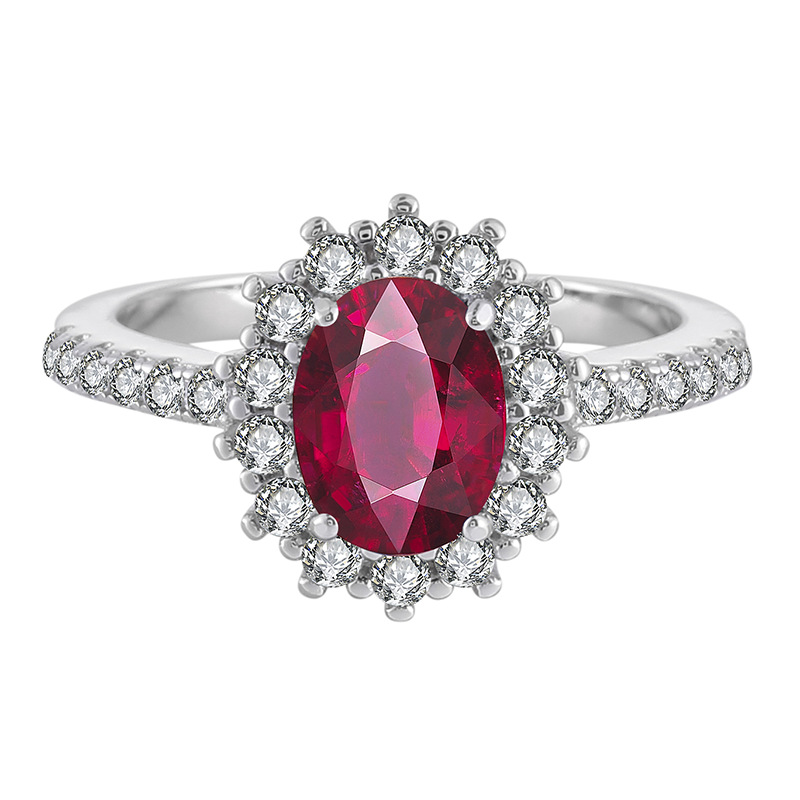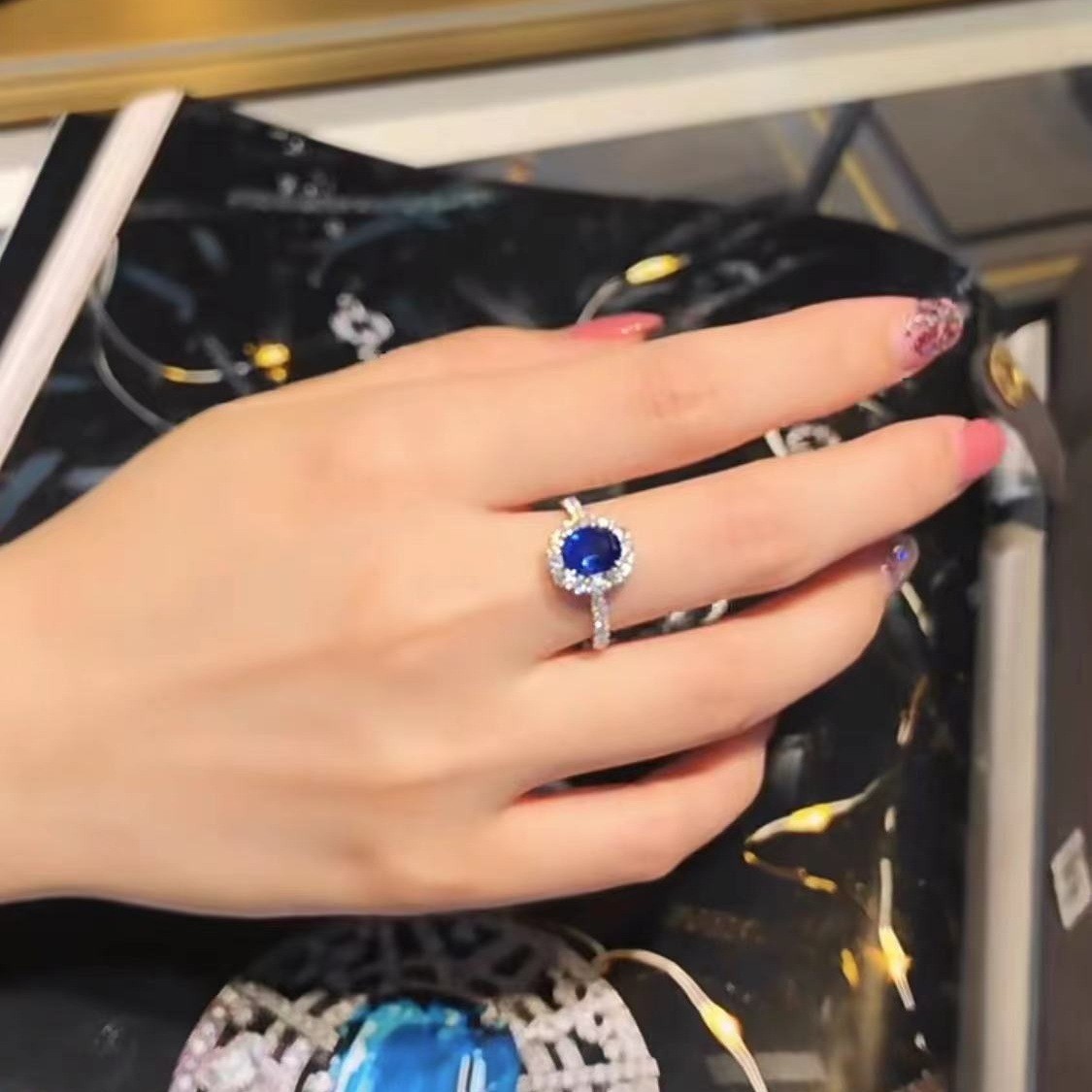 Online Celebrity Live Selling Simulation Ruby Sapphire Pigeon Egg Denier Ring Women's High-end Full Diamond Oval Ring
