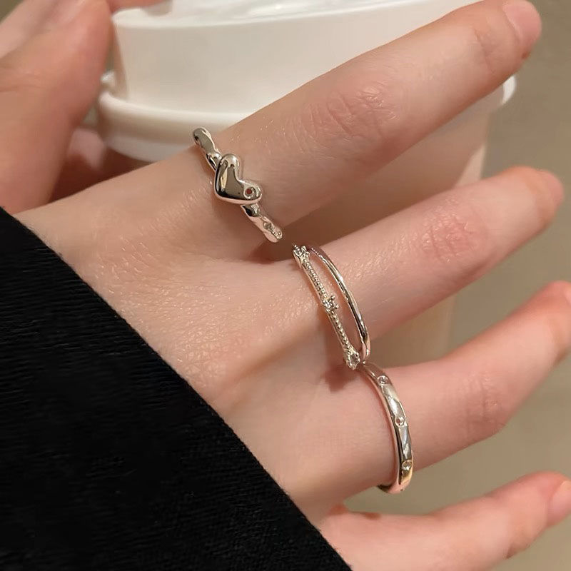 Love Plain Circle Zircon Open Ring Female Niche Design Cold Style Ring Light Luxury High-grade Sense Personalized Finger Ring