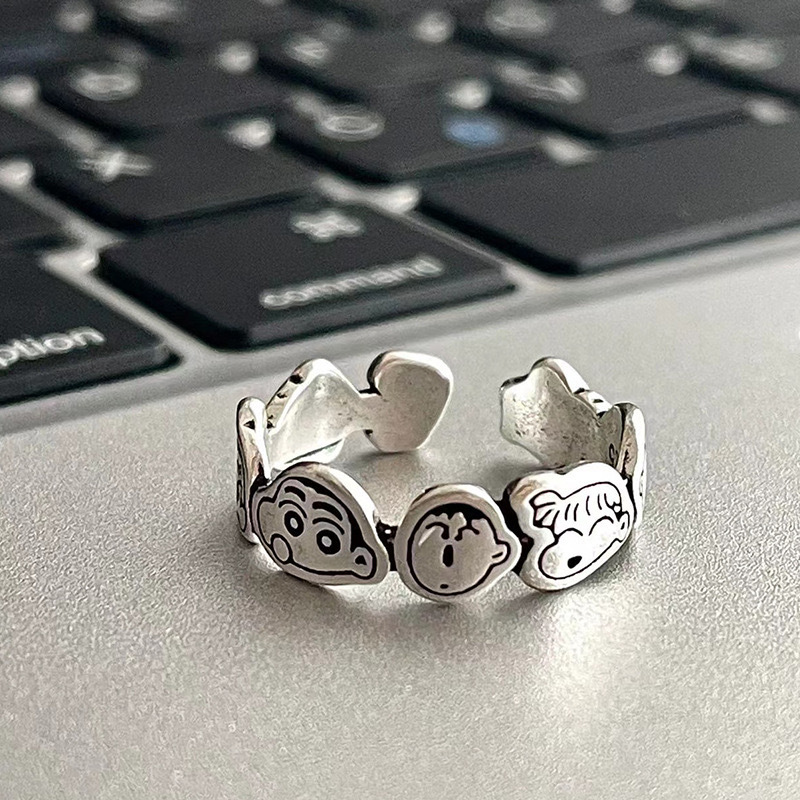 2024 New Cute Anime Cartoon Man Xiaoxin Ring Female ins Niche Design Open Adjustable Index Finger Ring