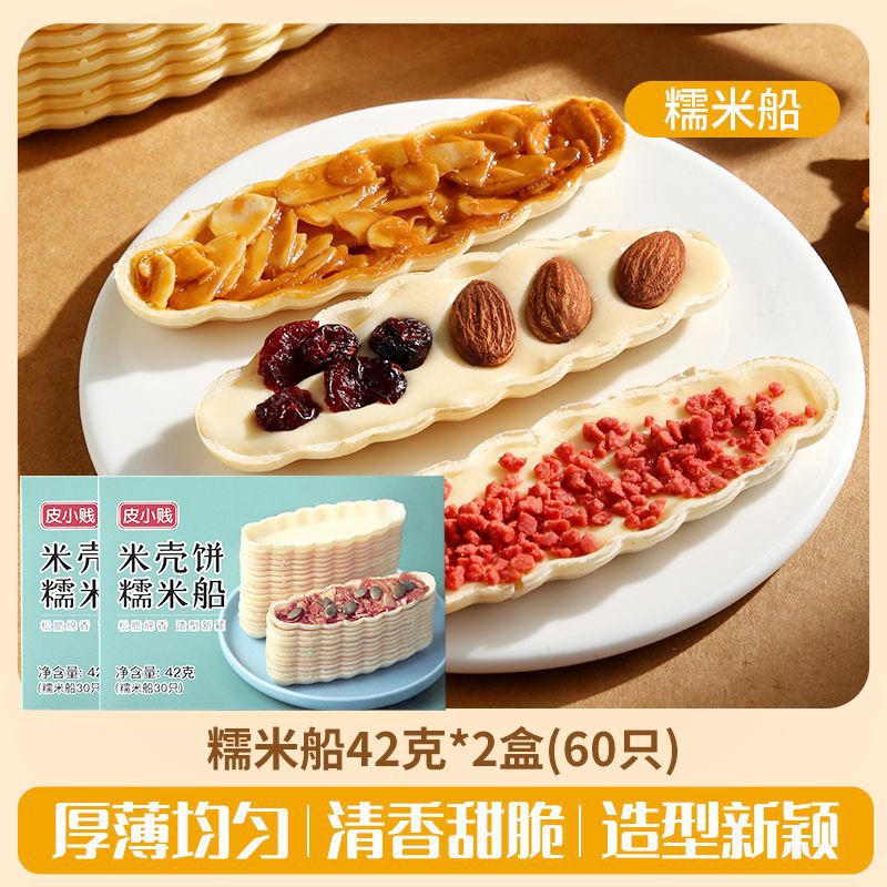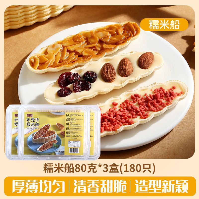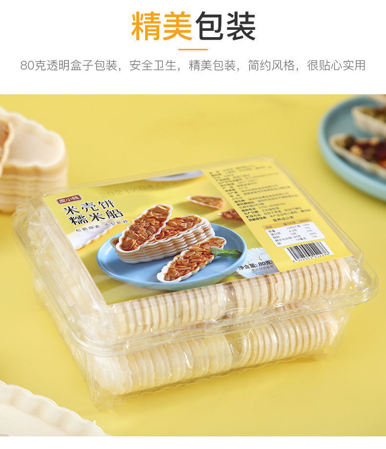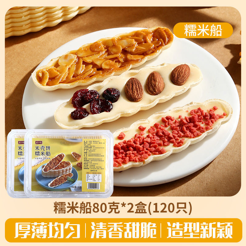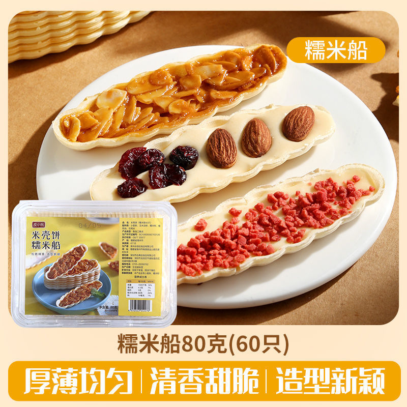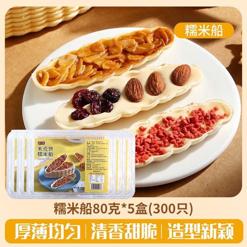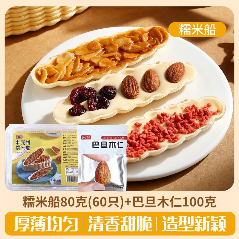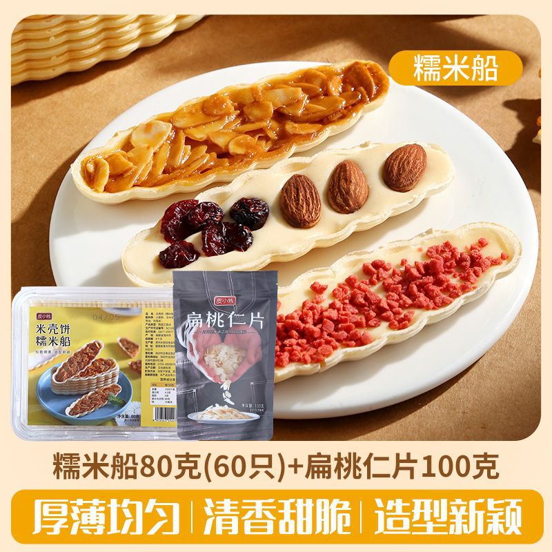 Packaging specifications: 60 glutinous rice boat shells + 100g almond slices
