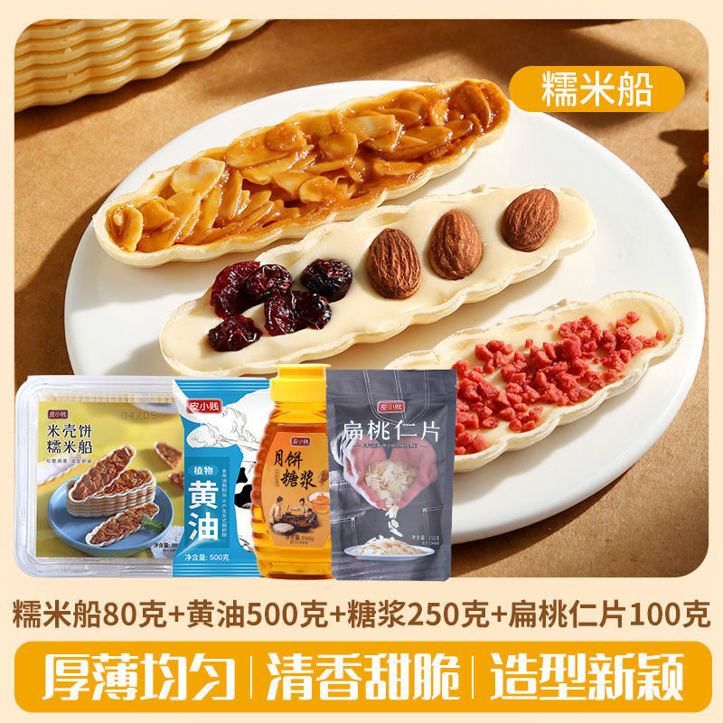 Packaging specifications: 60 glutinous rice boat shells + butter + syrup + almond slices