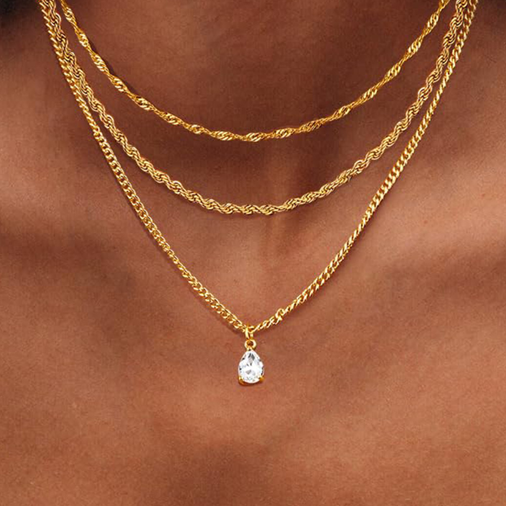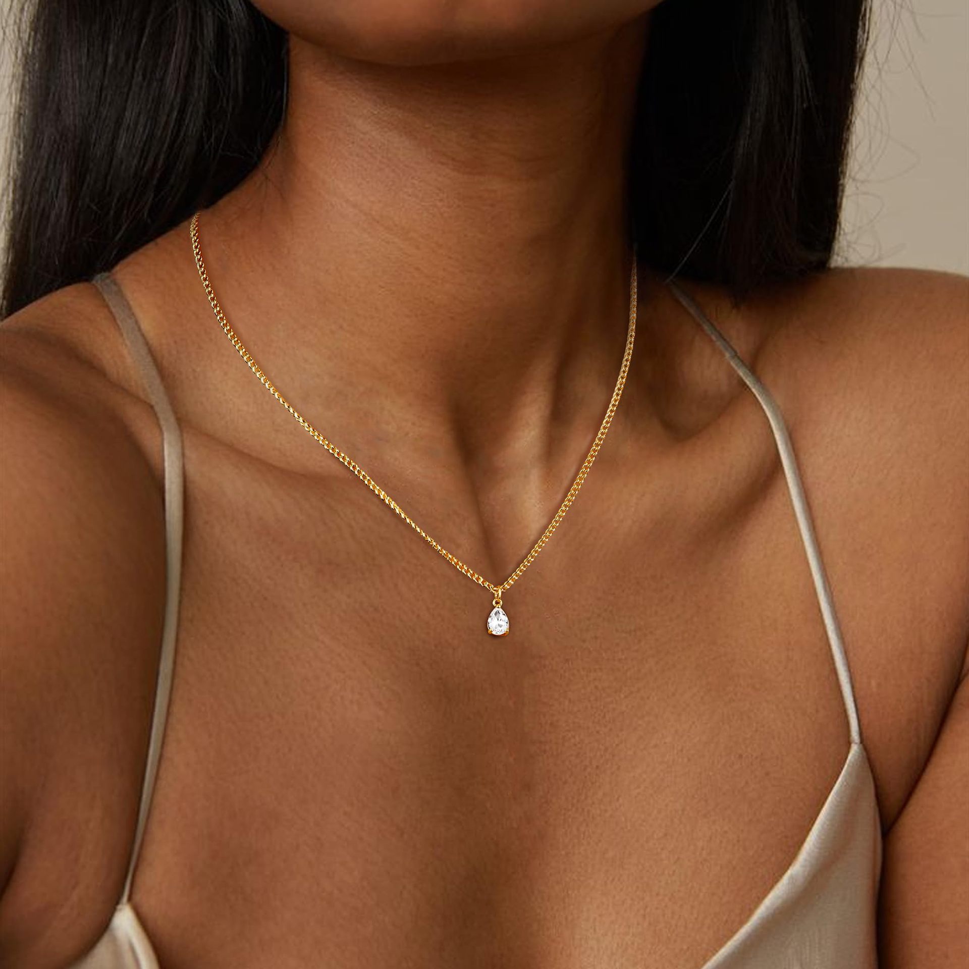 European and American Cross-border Hot-selling Water Ripple Twist Chain Water Drop Zircon Pendant Necklace Small and Exquisite Niche Clavicle Chain for Women
