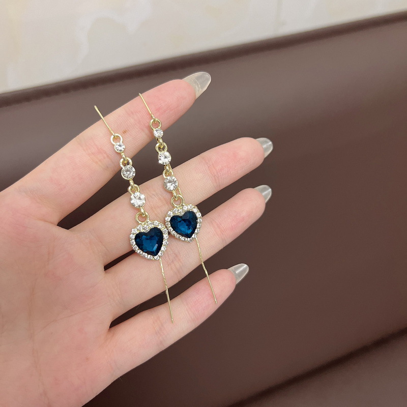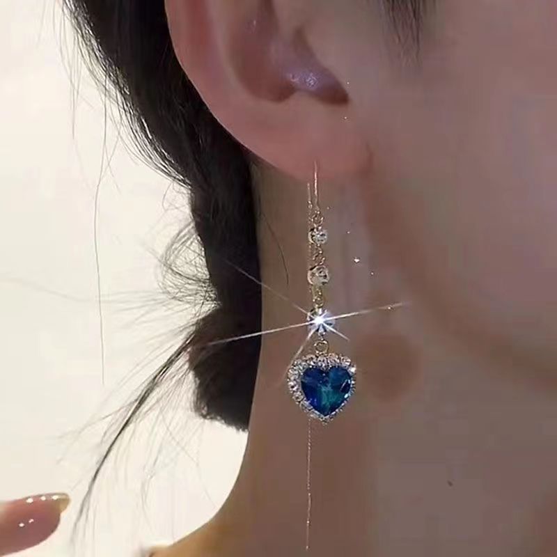 Cross-border selling earrings women's high-end fashion temperament love diamond water drop long tassel earrings wholesale