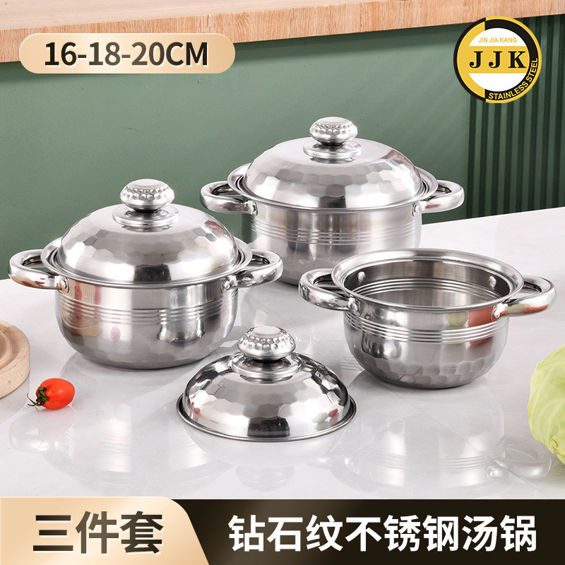 Four-Piece Pot Set Stainless Steel Gift Kitchen Pot Manufacturer Wholesale Foreign Trade Export Household Diamond Soup Pot