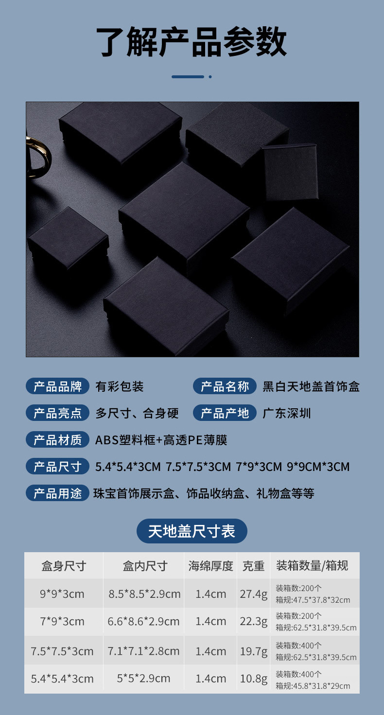 Specifications and models: Black; 7*9*3 (with sponge) jewelry box