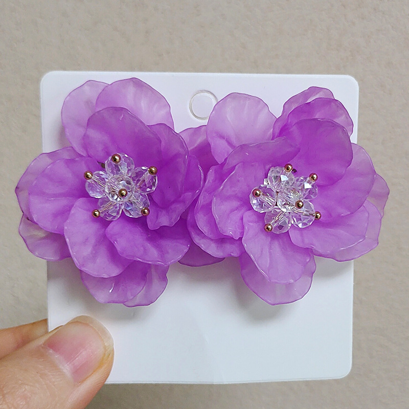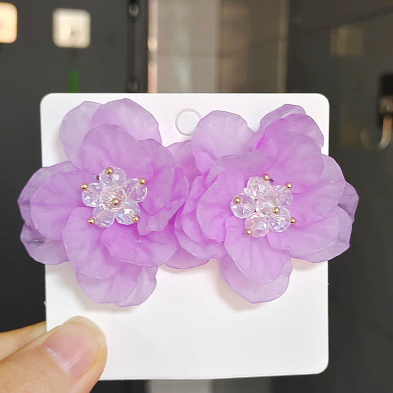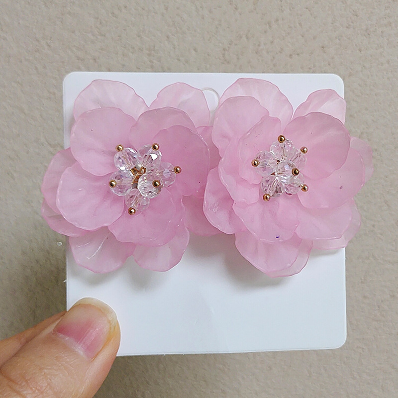 Summer Gentle Fairy Flower Earrings Hand-made Pearl Beaded Earrings Korean Fashion Shiny Crystal Mori Sweet