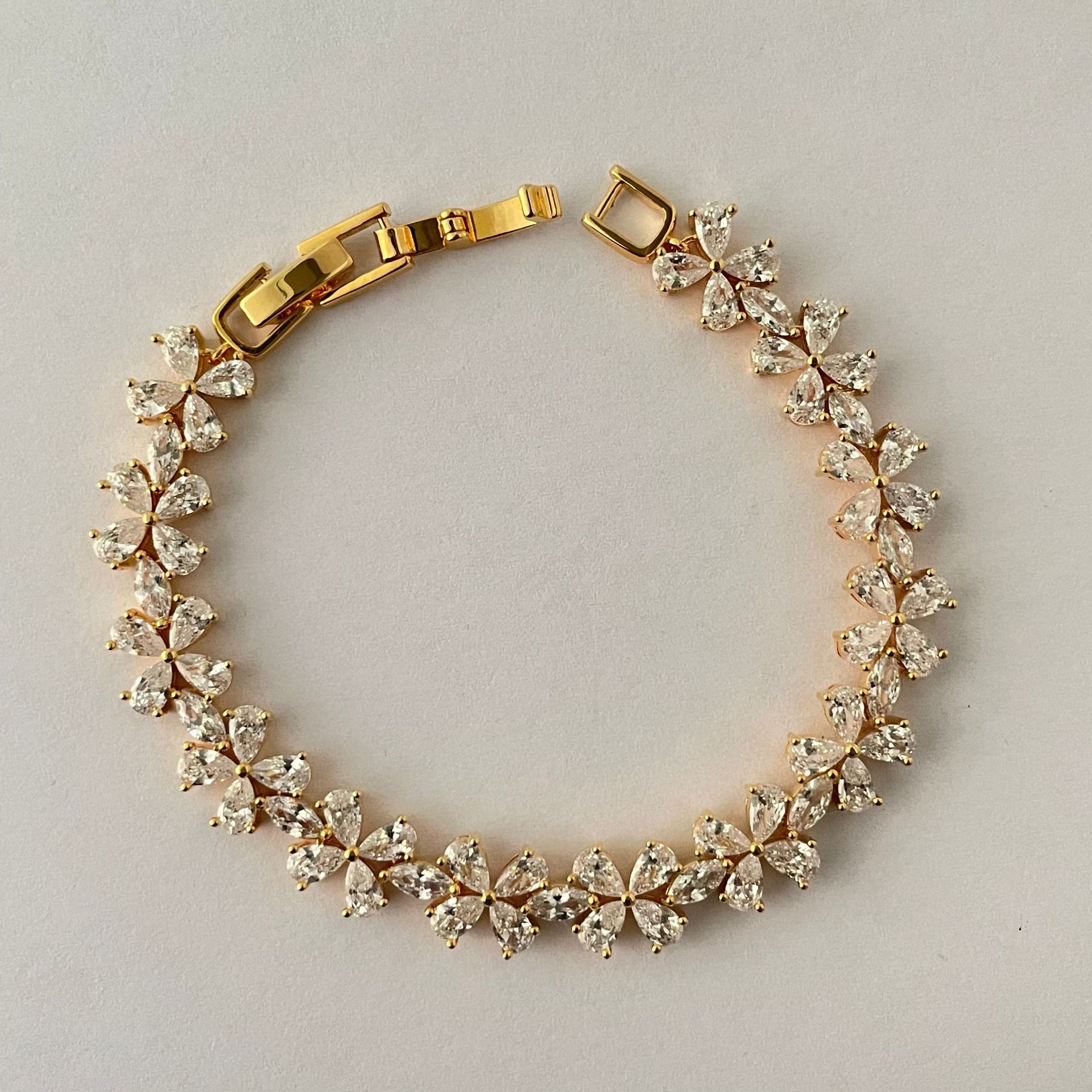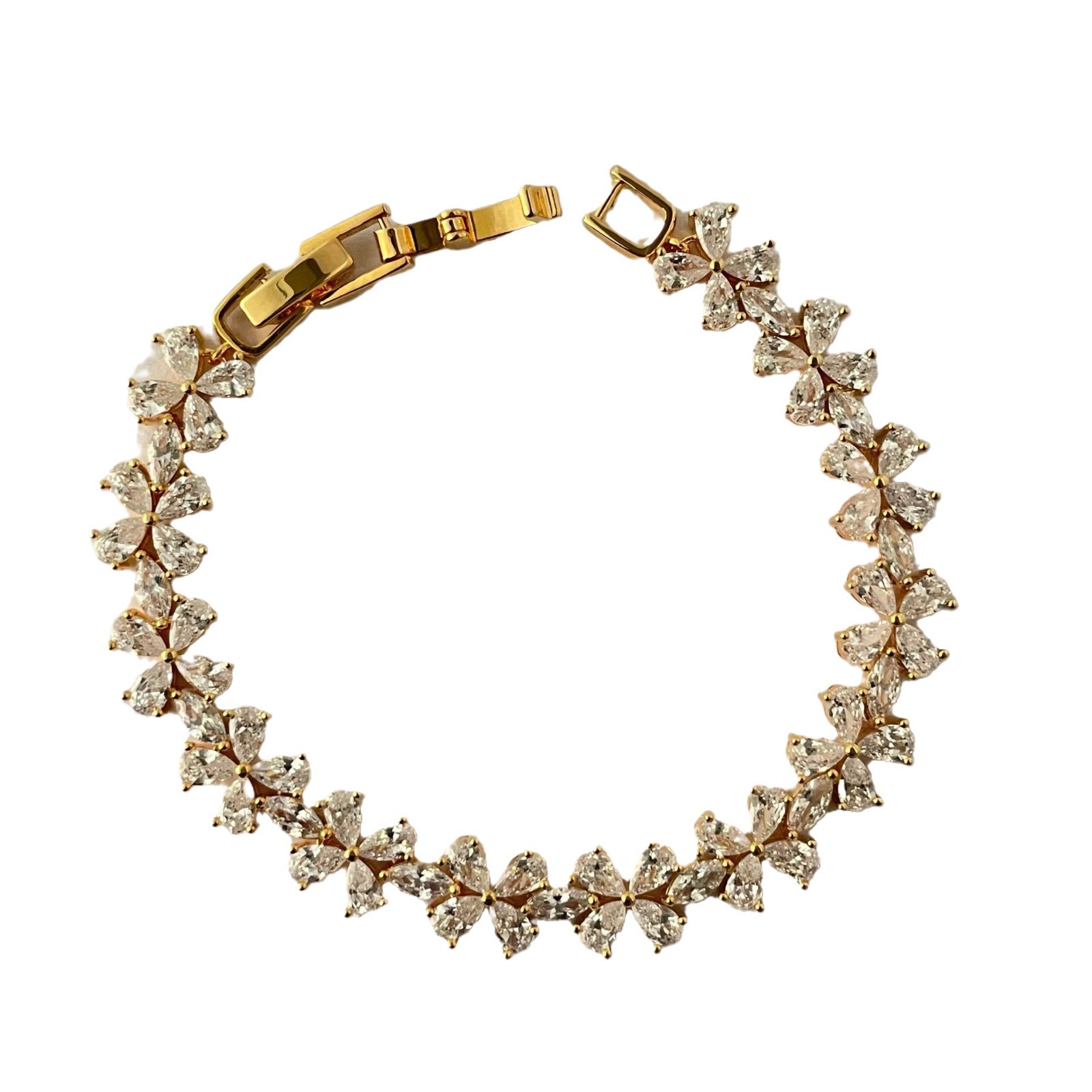 Item number: Real gold electroplated full diamond zircon flower bracelet