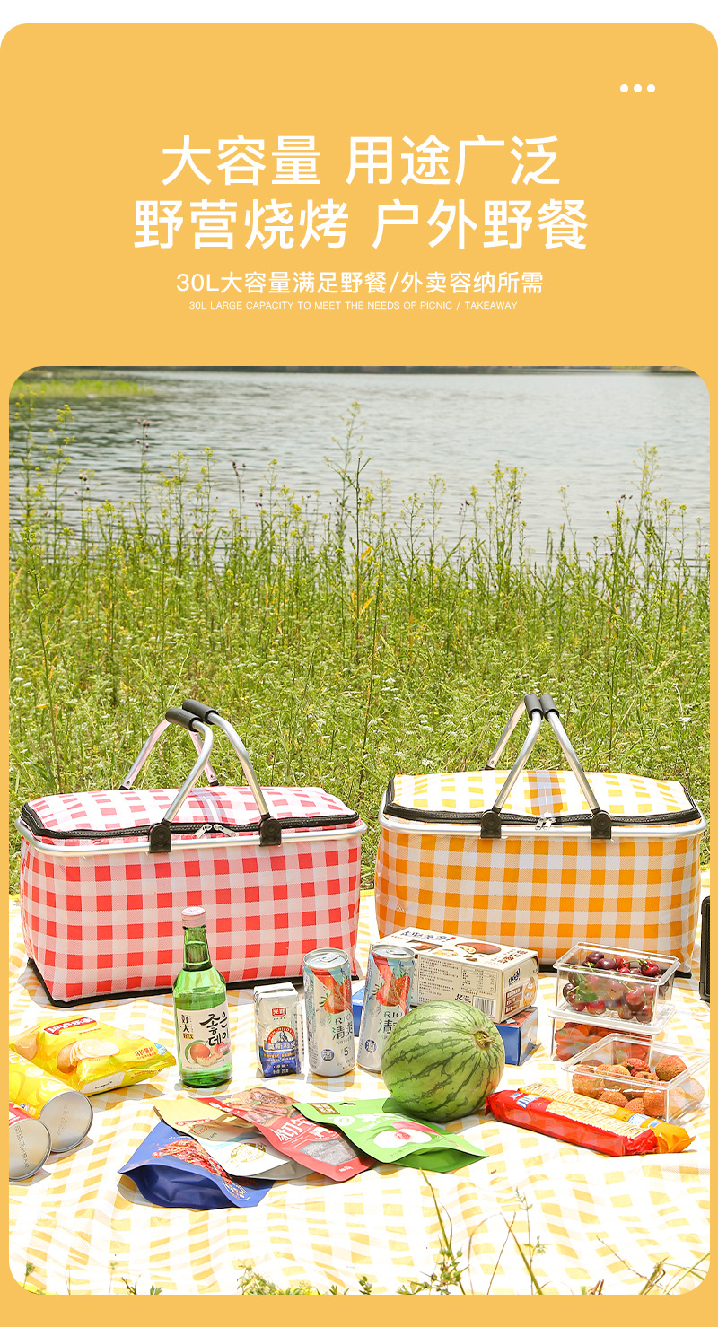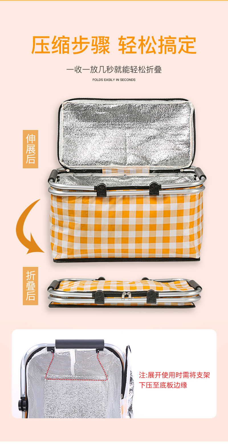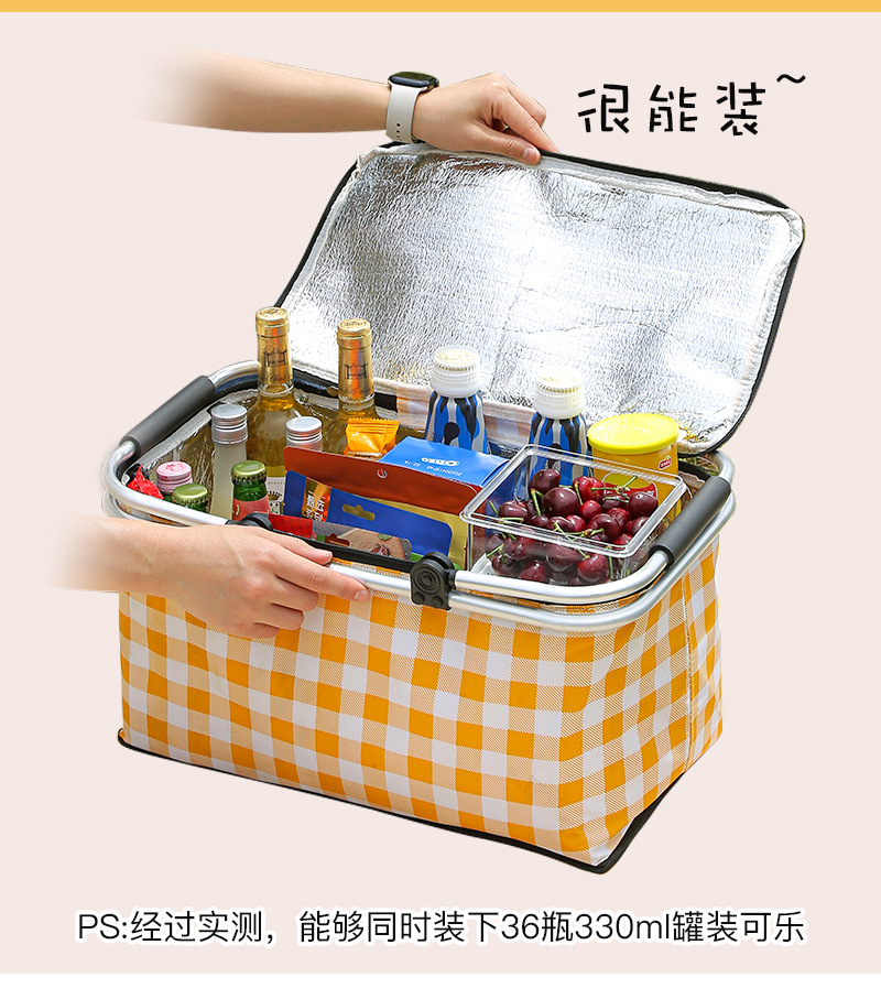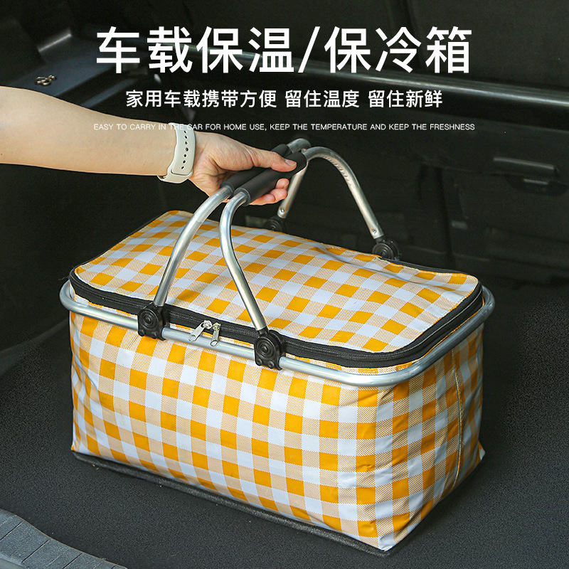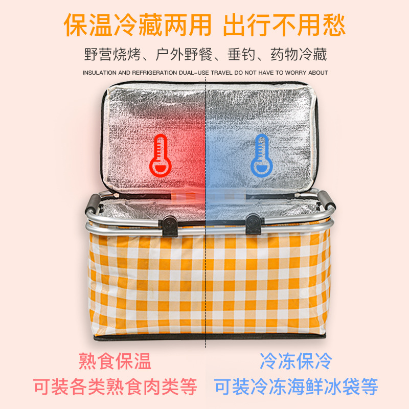 Folding picnic basket large capacity outdoor camping insulation bag portable aluminum foil thickened fabric car picnic bag wholesale