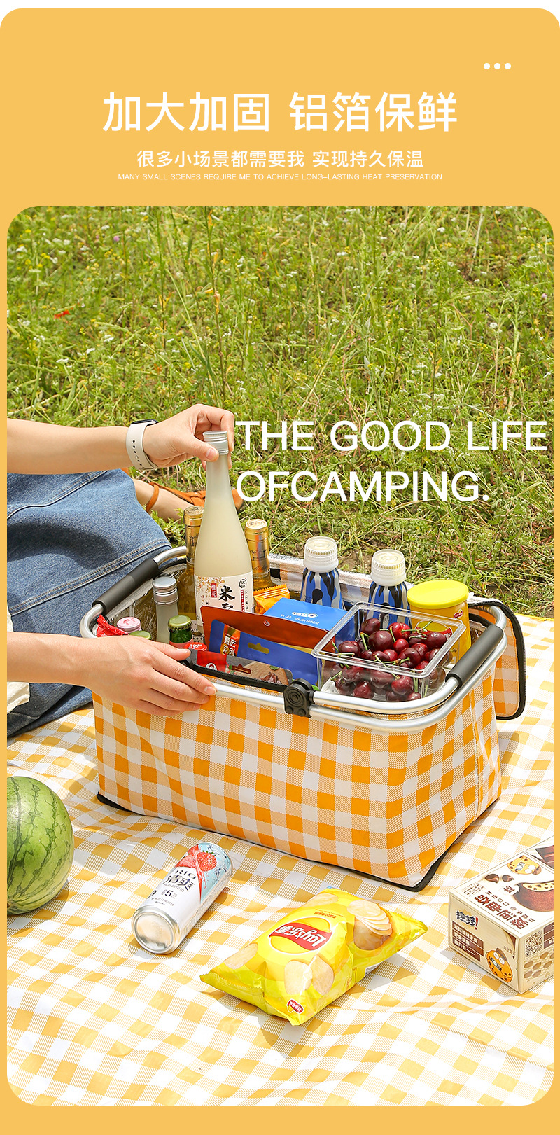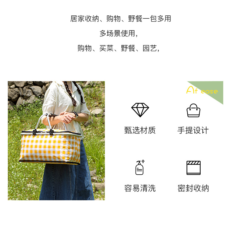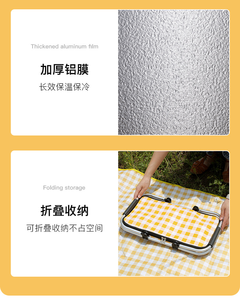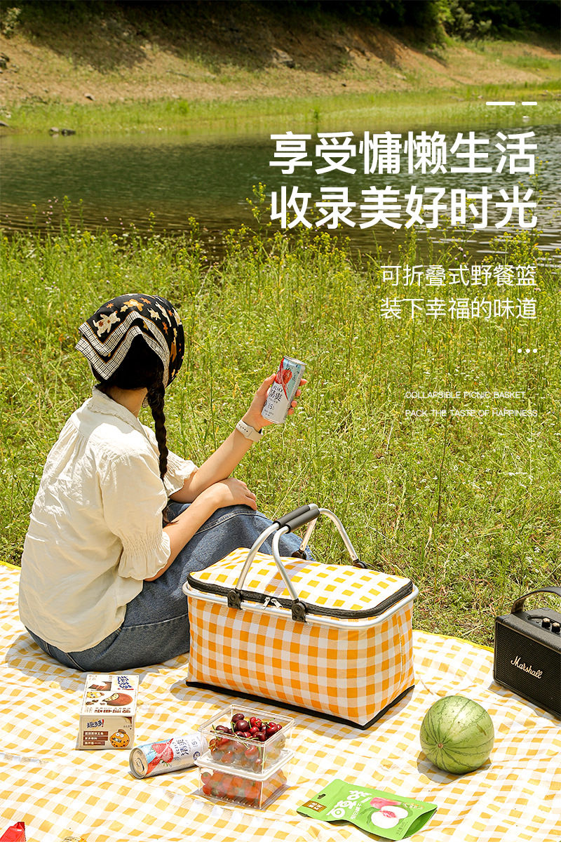 Folding picnic basket large capacity outdoor camping insulation bag portable aluminum foil thickened fabric car picnic bag wholesale