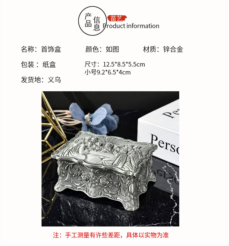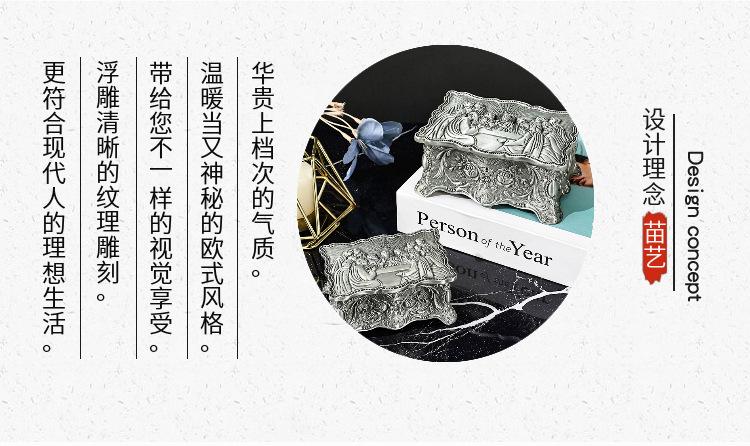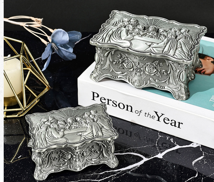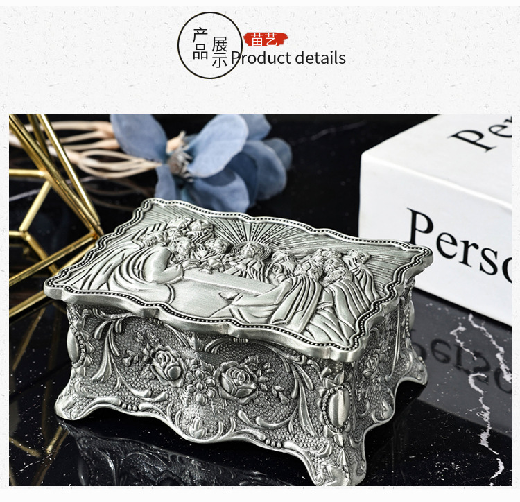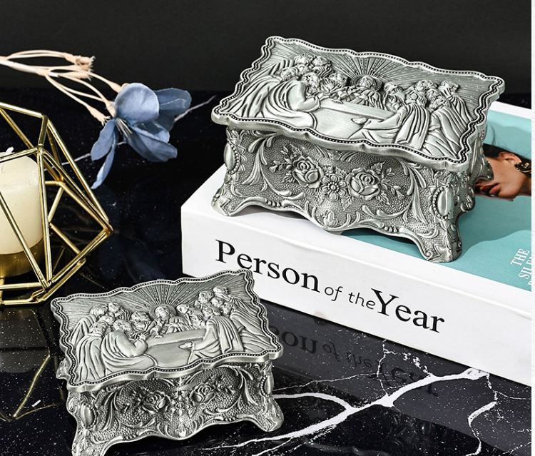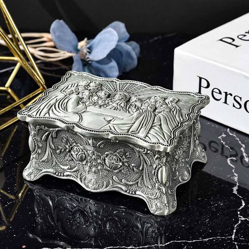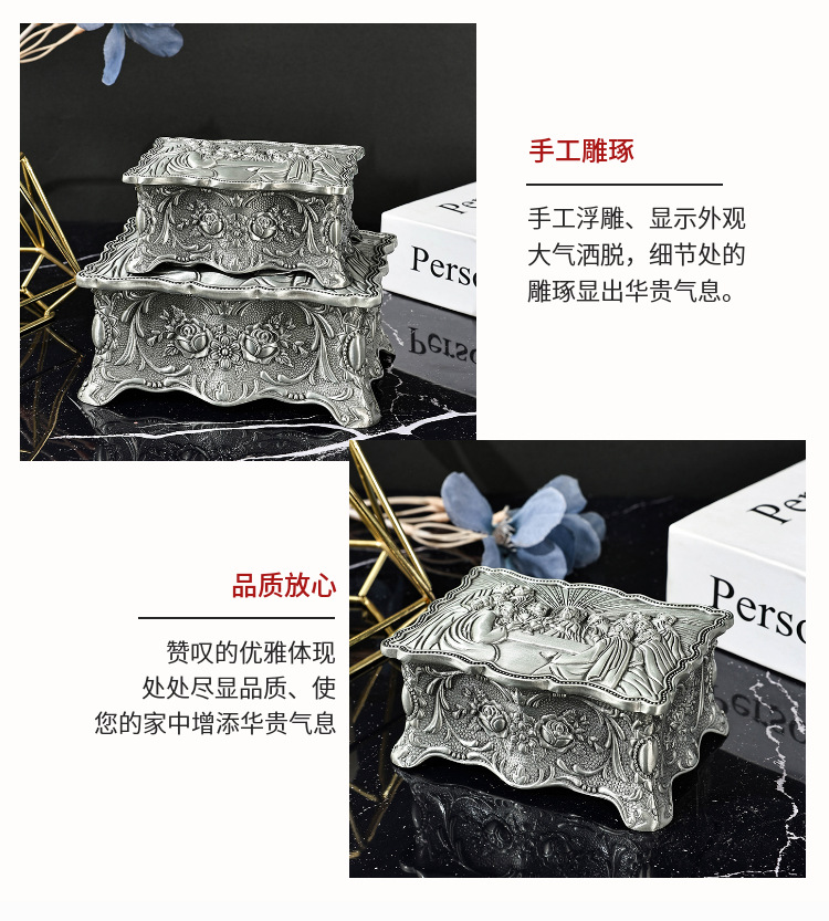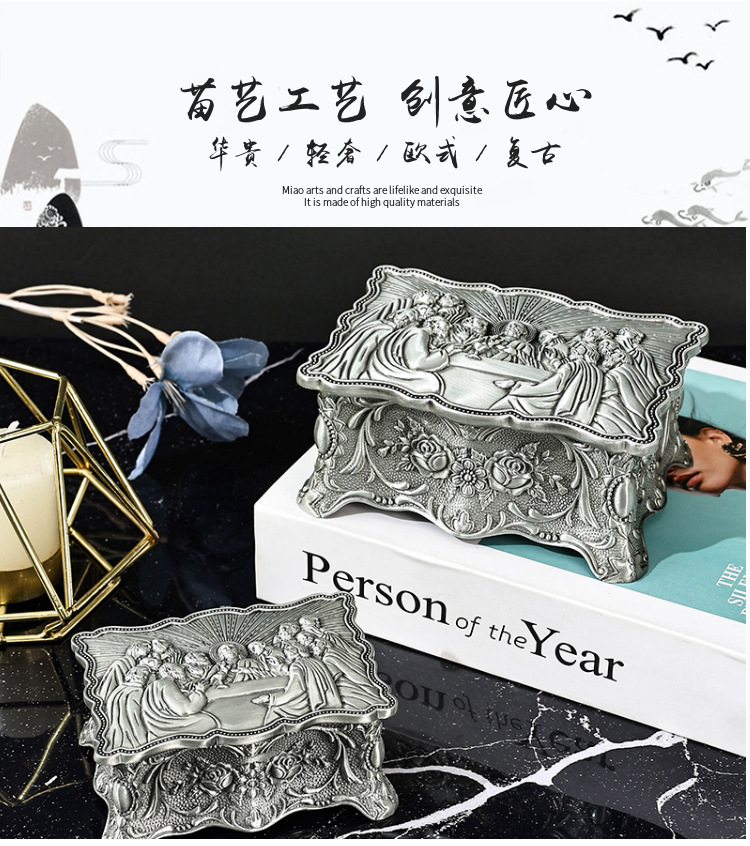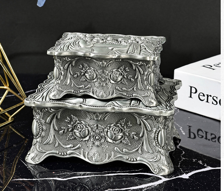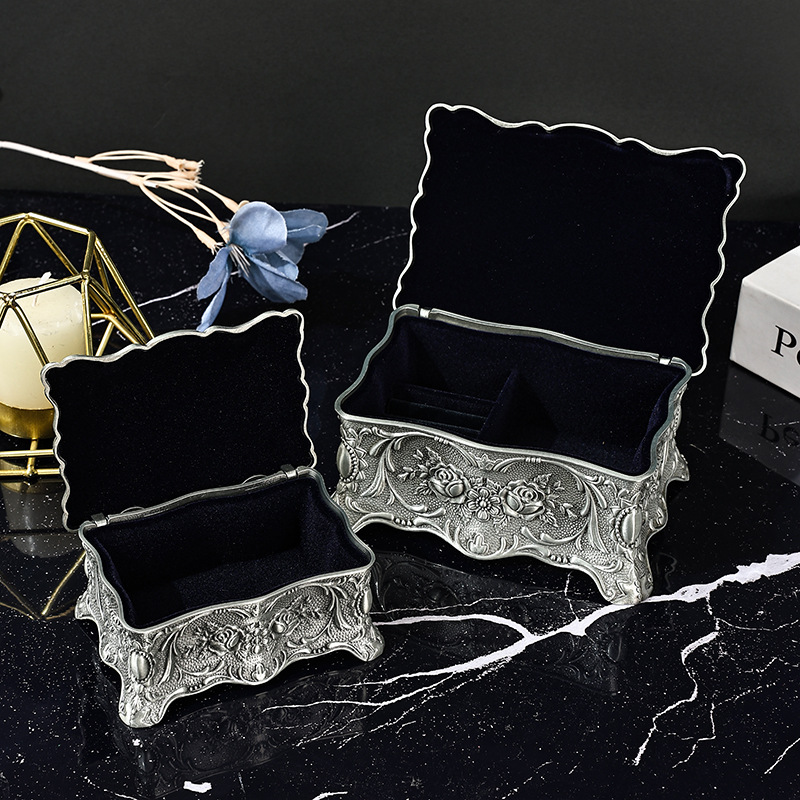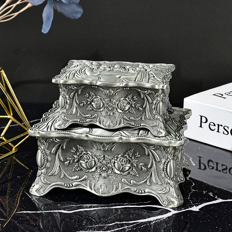 European-style Metal Jewelry Box High-end Creative Desktop Decorative Necklace Ring Storage Box Home Decoration Wedding Gift