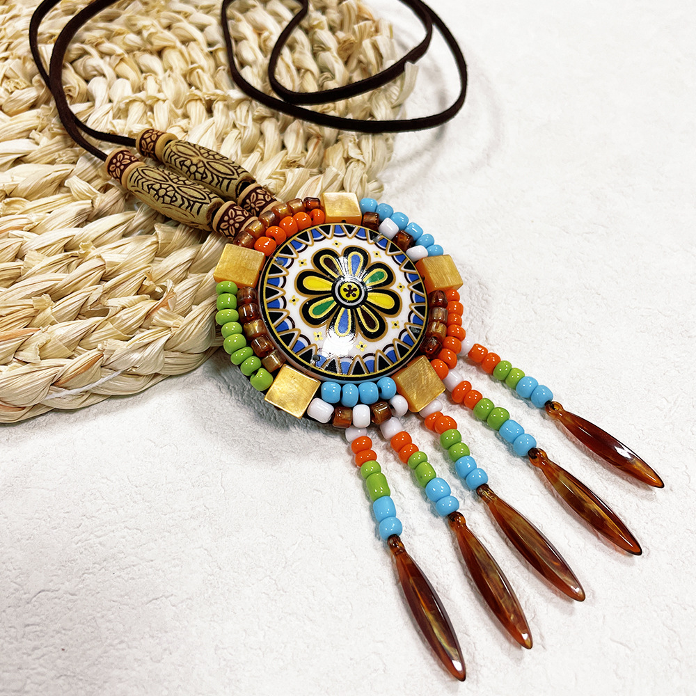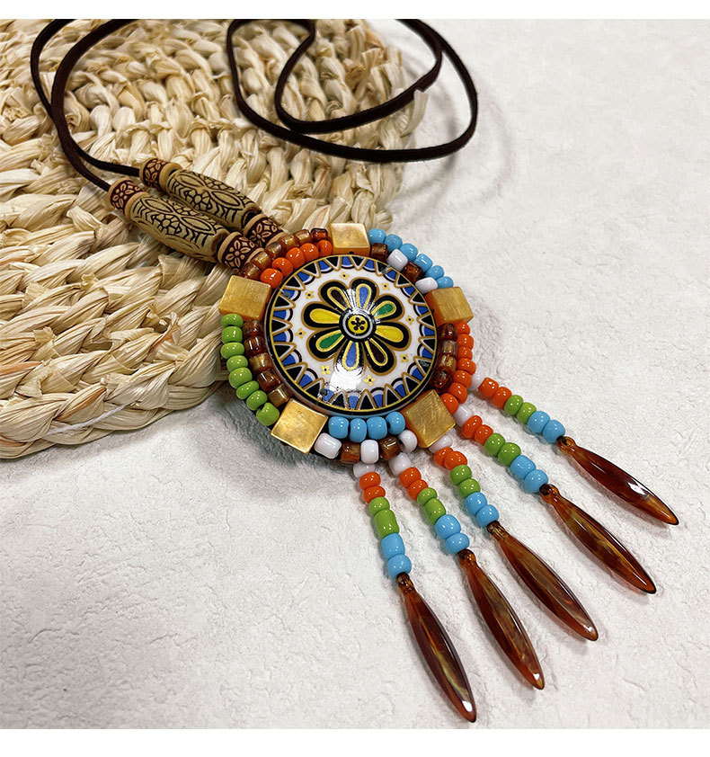New ethnic style retro leather necklace long fashion Bohemian sweater chain personality wear accessories wholesale