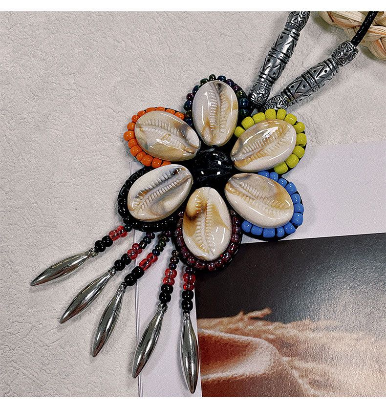 Color: Shell flower sweater necklace