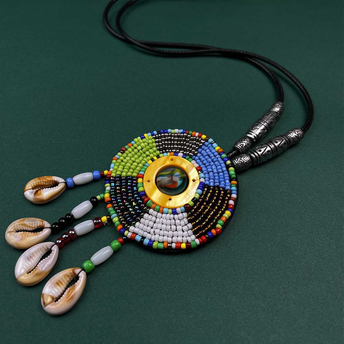 Color: Colorful glass bead sweater necklace