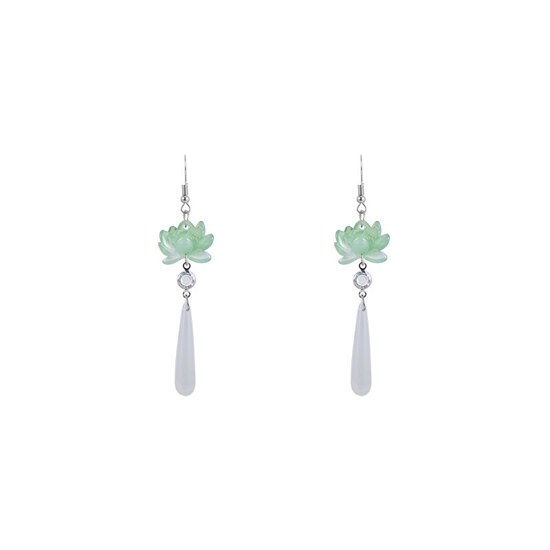 Color: White Water Drops Green Lotus Earrings
