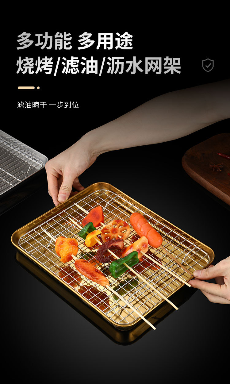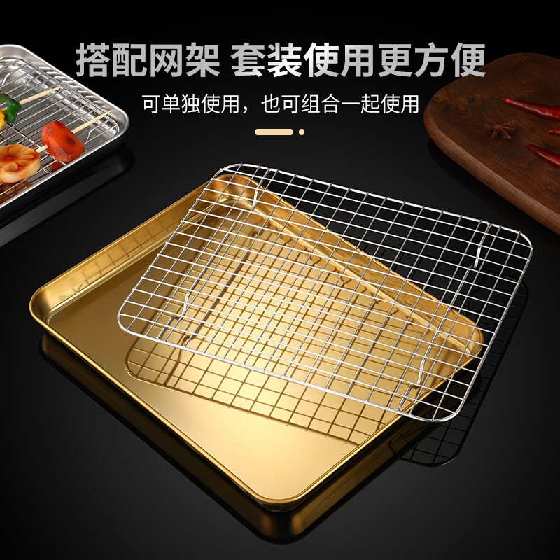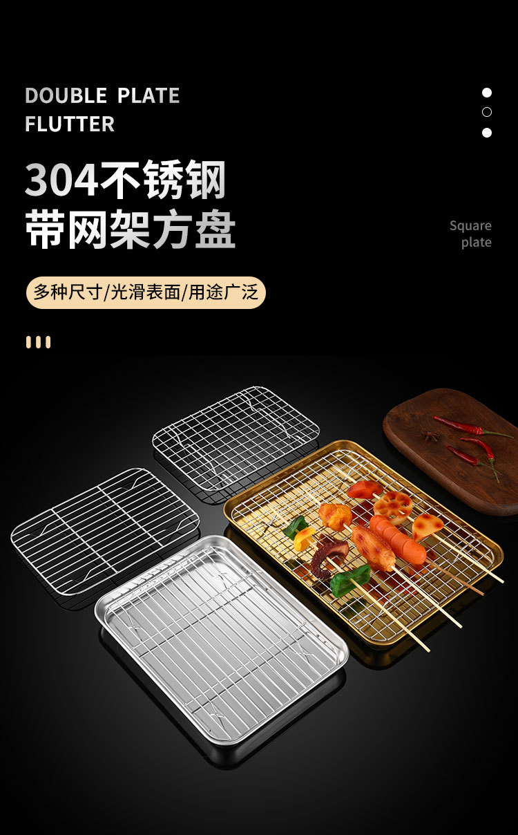 304 Stainless Steel Tray with Mesh Oil Control Rack Square Plate Commercial Oil Leakage Filter Drain Tray Display Plate Sprinkling Plate